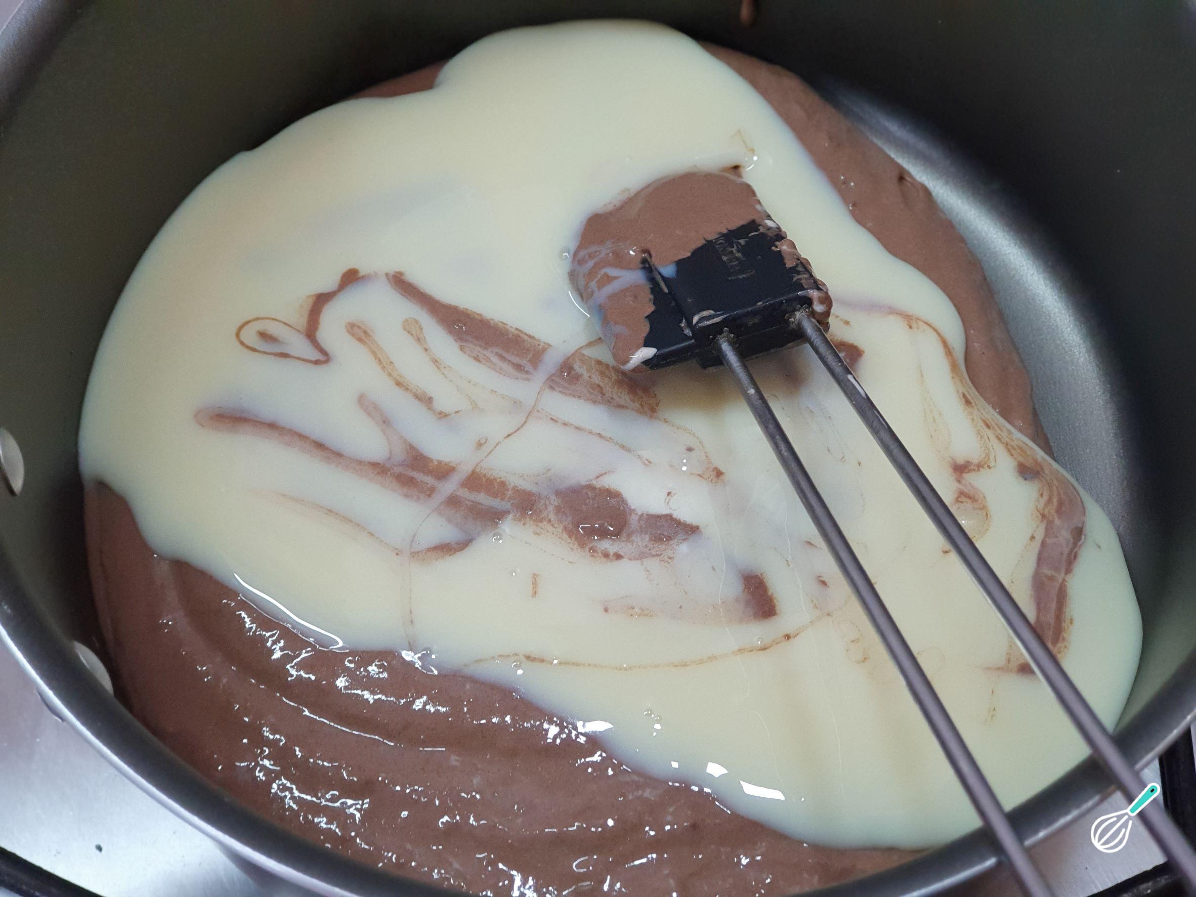 Em uma panela no fogo médio junte o leite condensado, o creme batido e o chocolate picado. Misture muito bem durante todo o tempo, para que não grude no fundo.