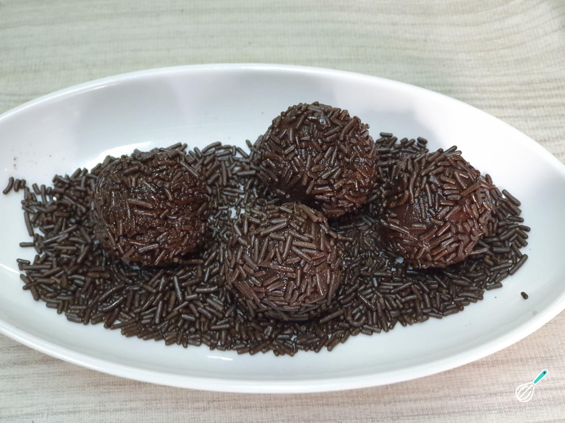 Faça bolinhas com as mãos untadas com óleo de coco e passe os brigadeiros no chocolate granulado. Está pronto!