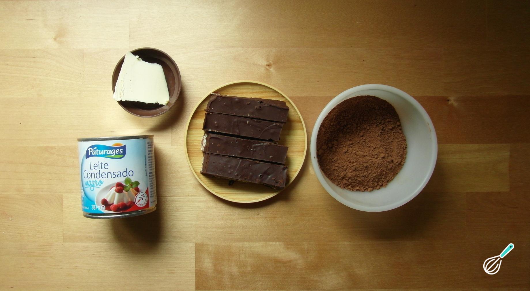 Para preparar esta receita de brigadeiro de Kit Kat comece por reunir os ingredientes (certifique-se de que o Kit Kat está gelado). Neste caso usei Kit Kats caseiros, que você pode aprender a fazer aqui.