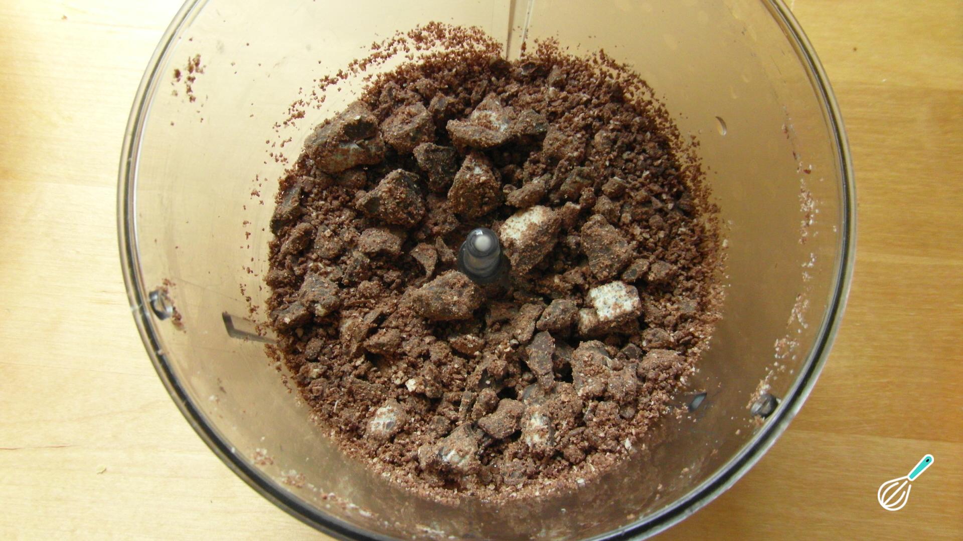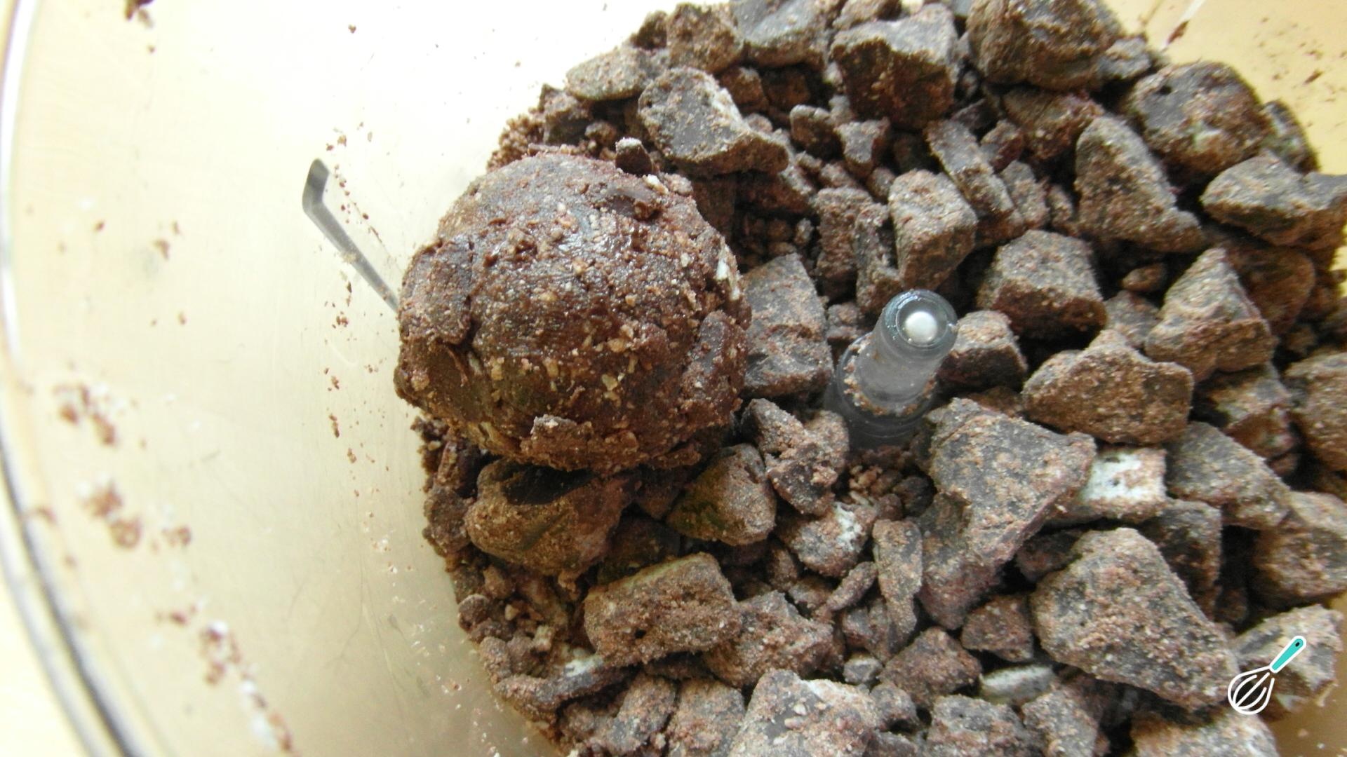 Dica: O que pretendemos é uma areia de biscoito e chocolate para empanar os brigadeiros.