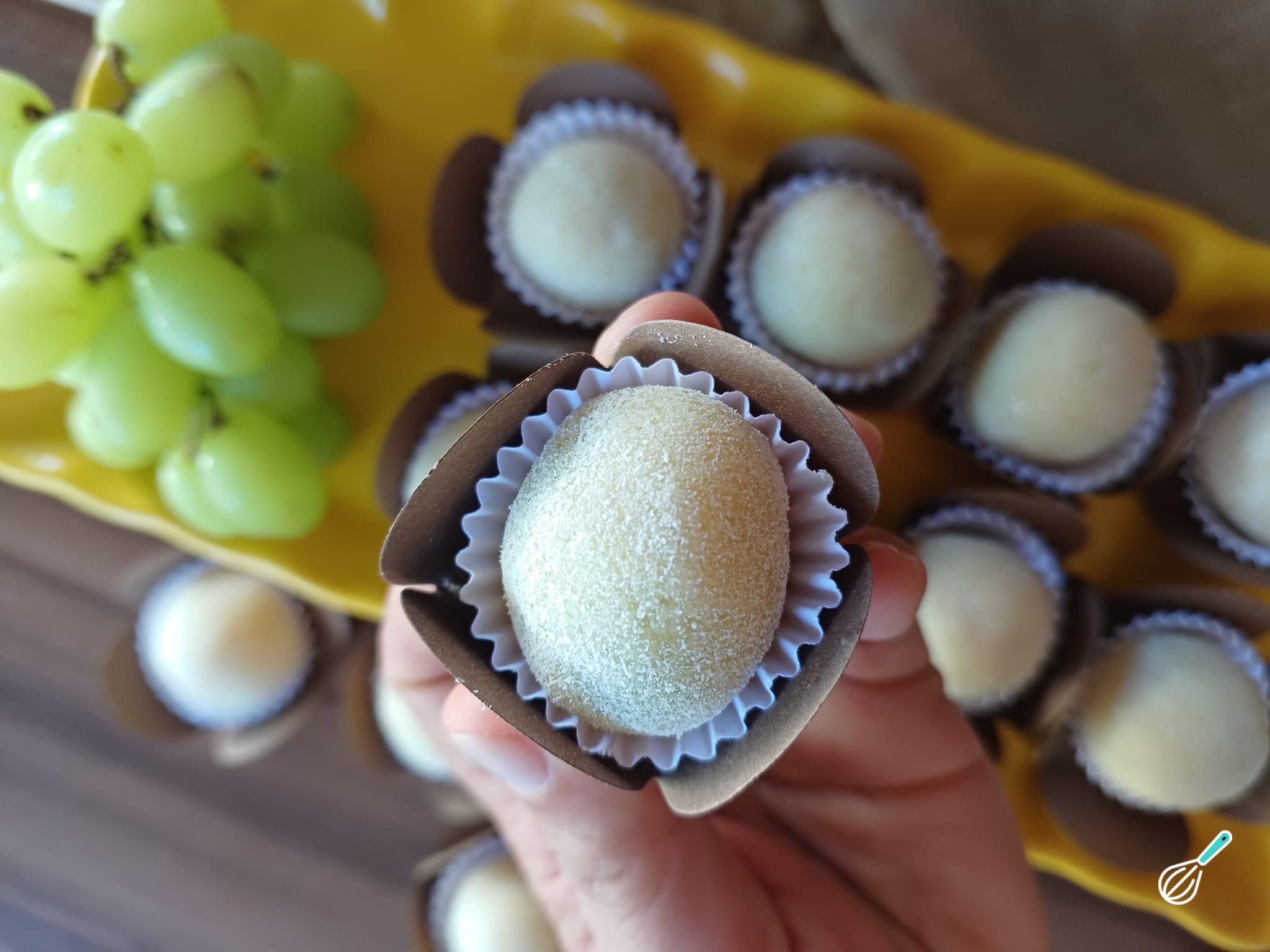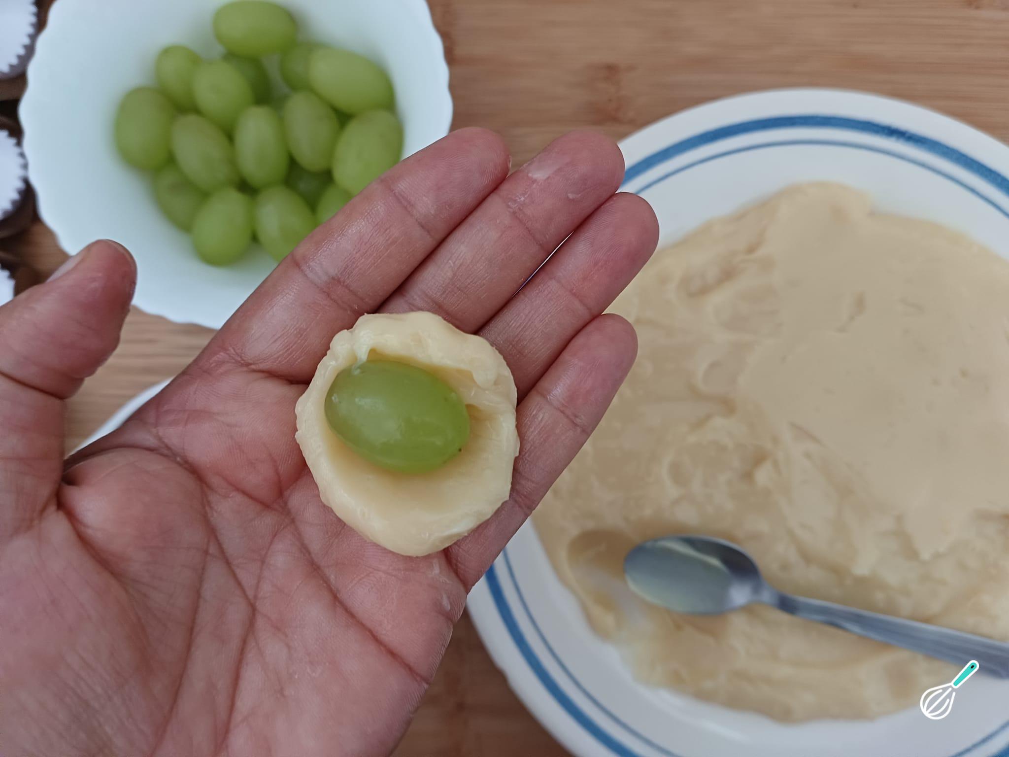 Adicione a uva nesta cavidade e feche o brigadeiro formando uma bola.