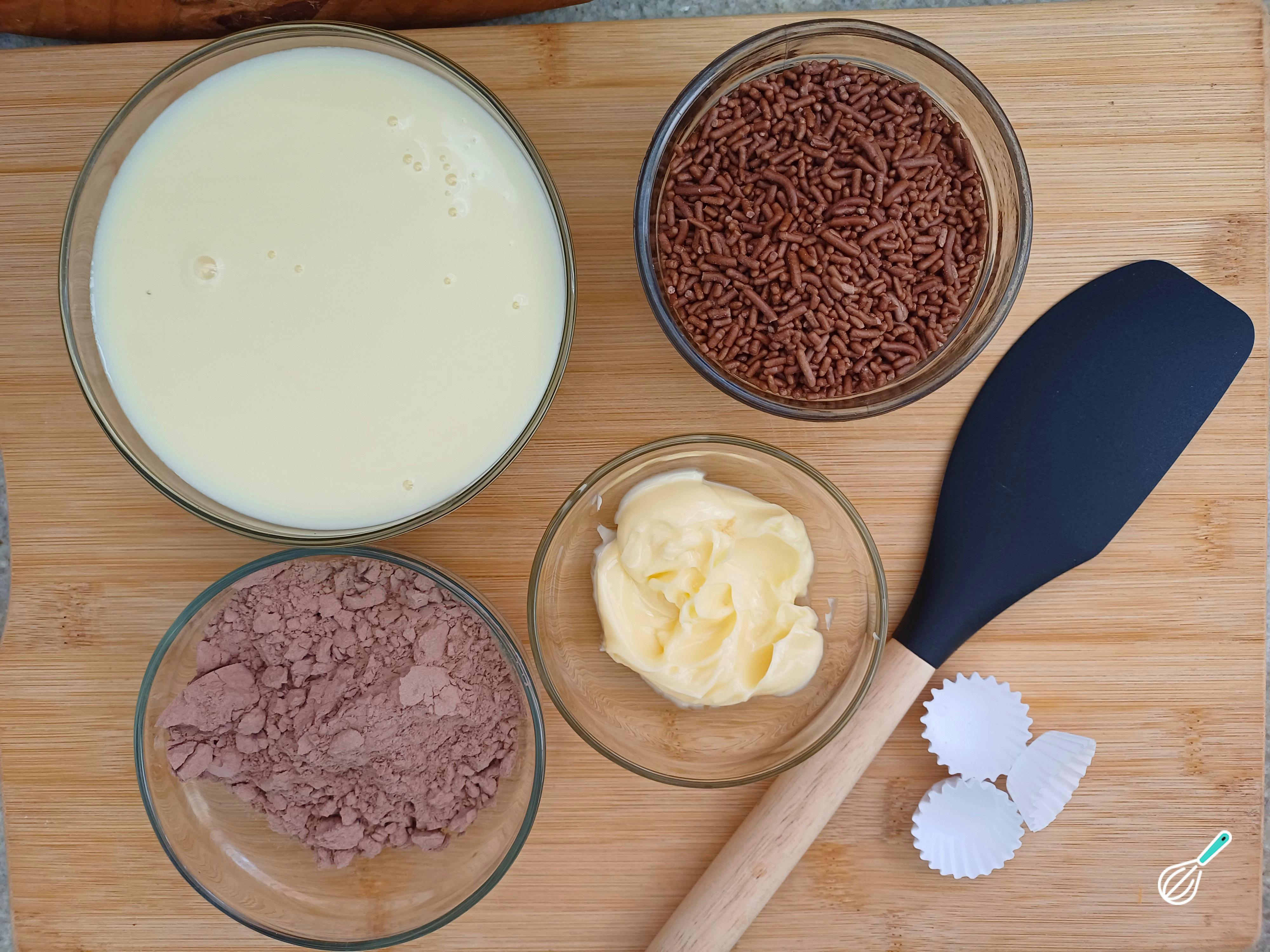 Separe os ingredientes necessários para o preparo da receita de brigadeiro no ponto de enrolar.