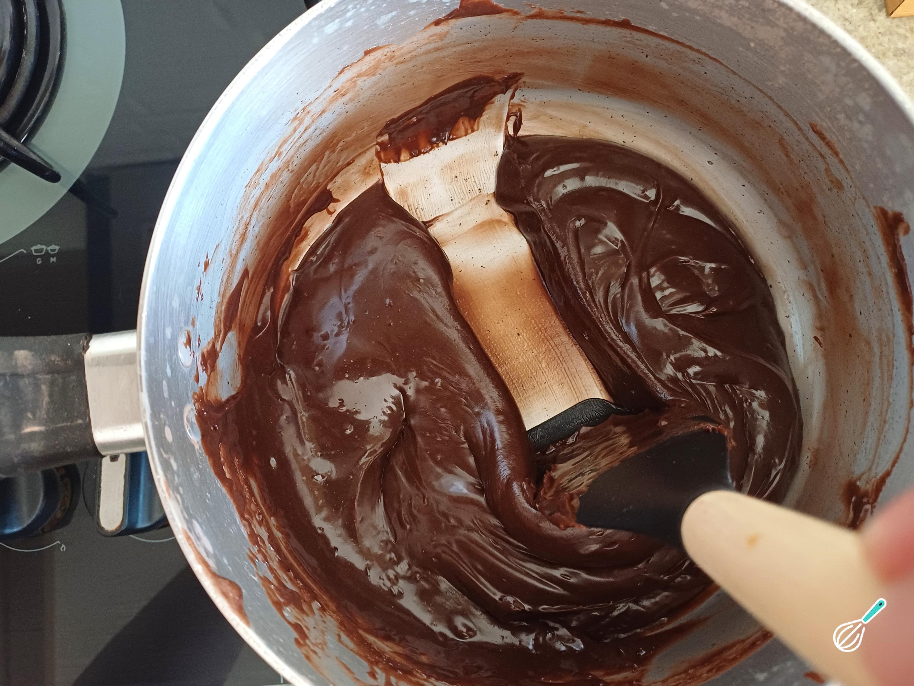 O brigadeiro estará no ponto de enrolar quando desgrudar completamente do fundo da panela.