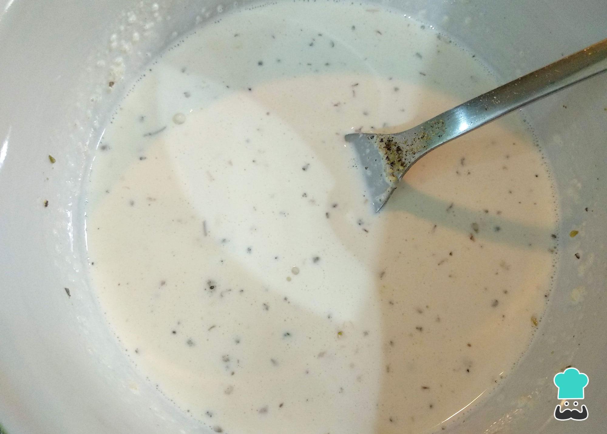 À parte prepare o creme: misture o creme de leite com um pouco do queijo ralado e os temperos.