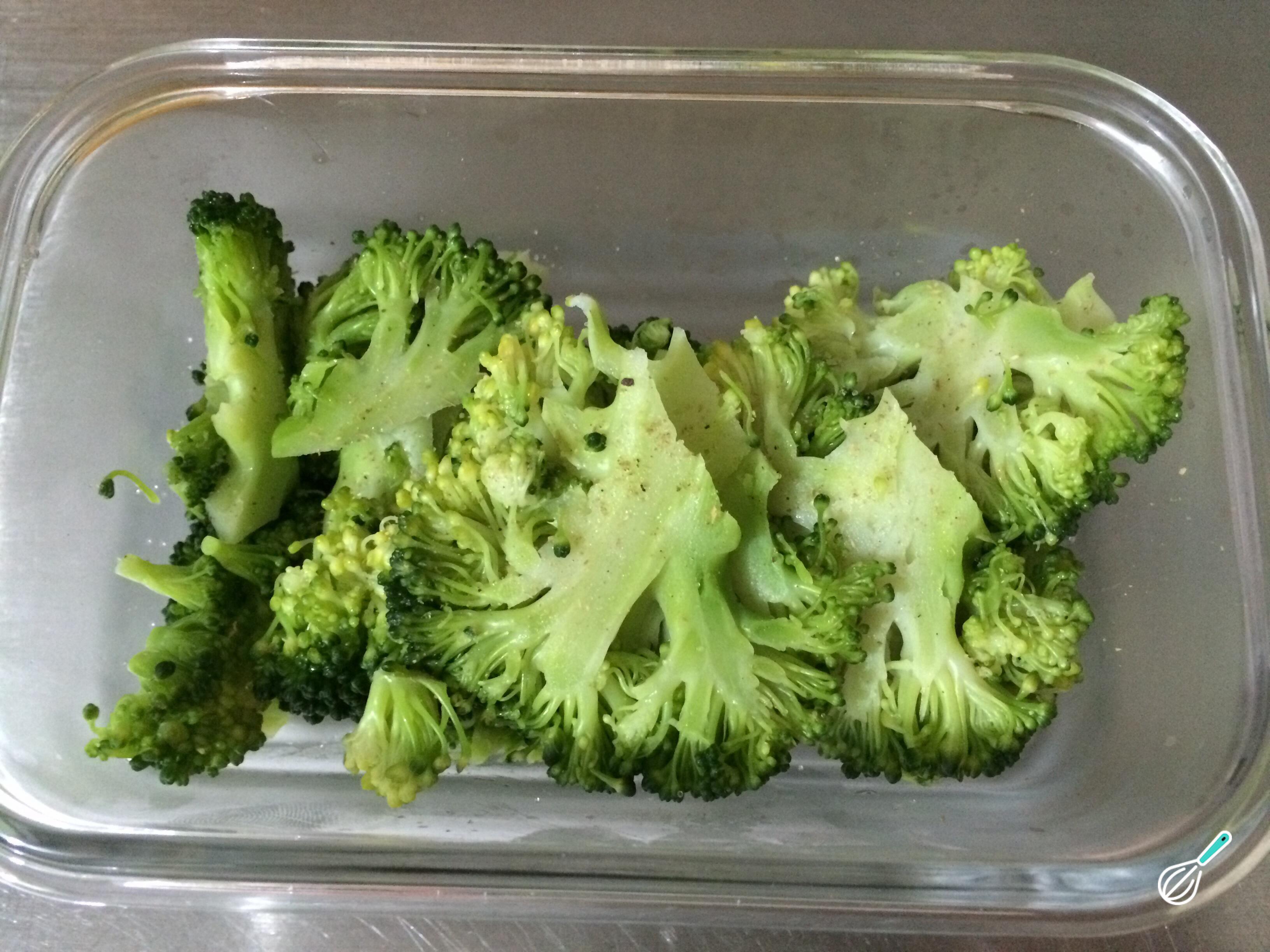 Depois do passo anterior continue preparando o brócolis gratinado light, cortando o legume em pedaços menores e colocando em um refratário. Tempere a gosto com sal, pimenta e um fiozinho de azeite.