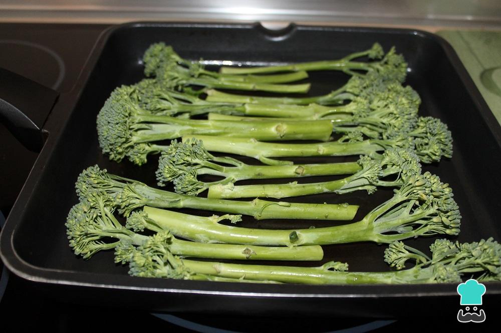 Lave o brócolis e arrume-o na grelha, sem sobrepor, como na foto. Na hora de saber como cozinhar brócolis de rama vale a pena lembrar que, no caso de cozinhar ele na grelha, bastam 5 minutos de cada lado em fogo alto. Por isso deixe o brócolis cozinhar por aproximadamente 2 minutos, depois vire-o e deixe cozinhar por mais 3 minutos.