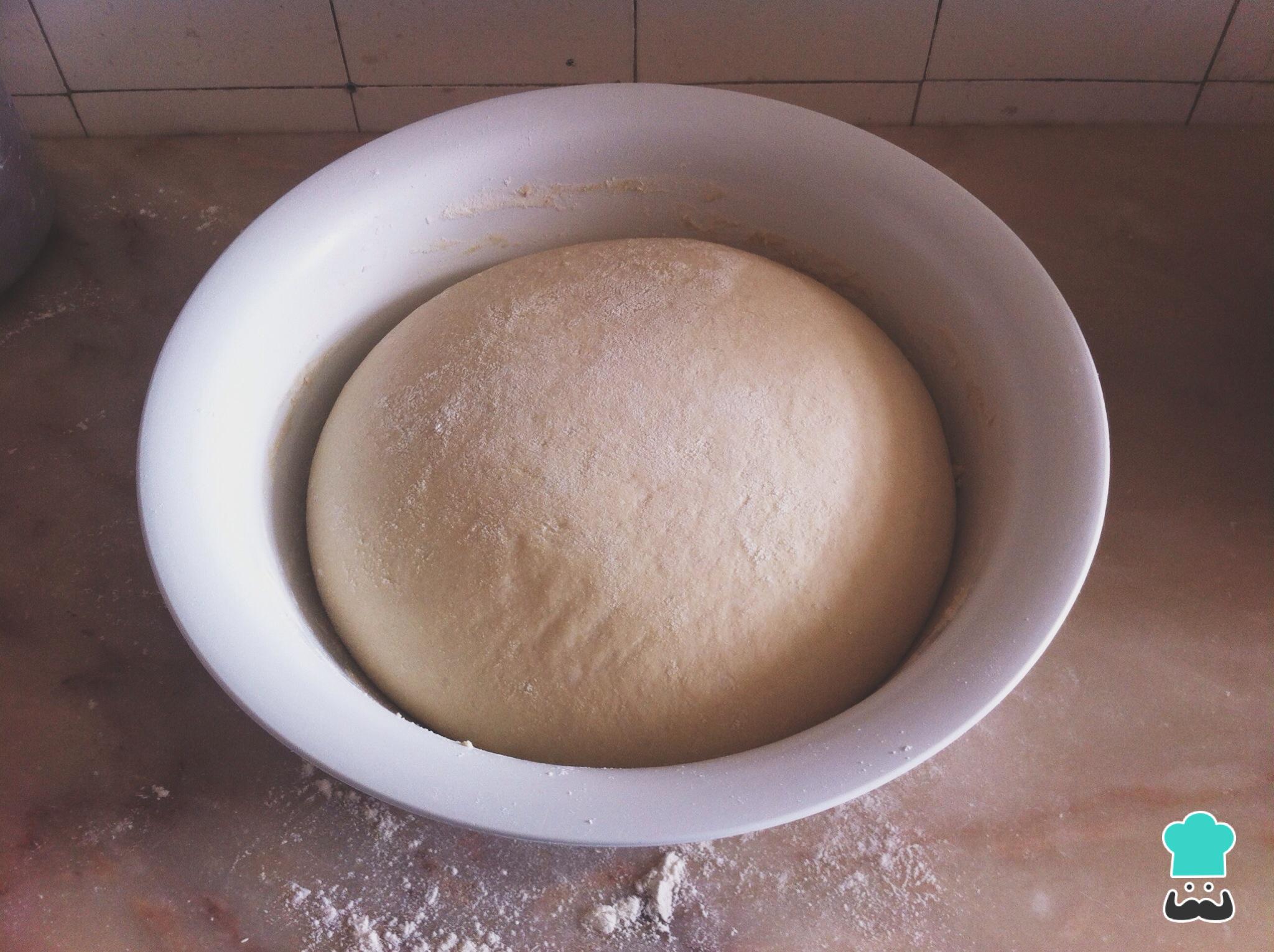 Em uma tigela grande, coloque a farinha, o leite em pó, o fermento, o sal, o açúcar e a manteiga. Adicione a água aos poucos, amassando e sovando até desgrudar da tigela. Deixe crescer por 30 minutos.