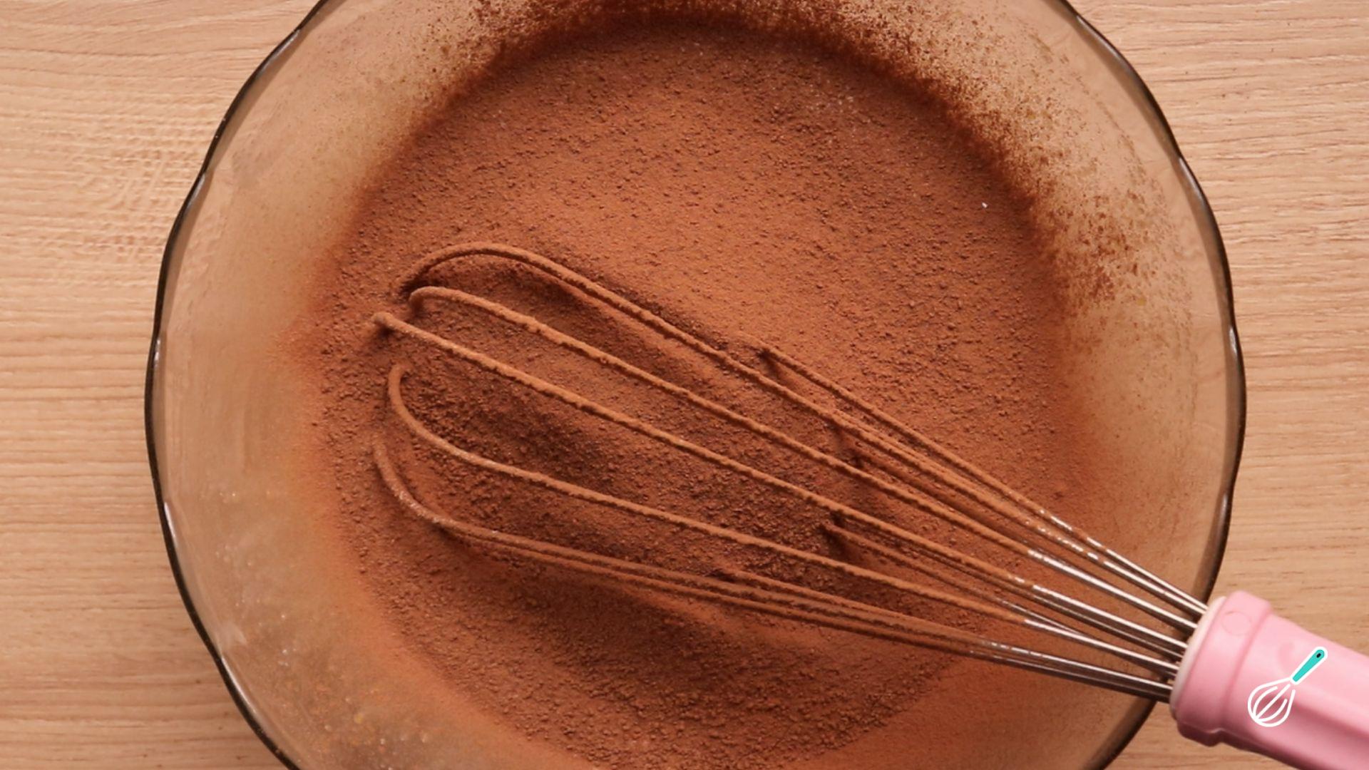 Junte os secos:a farinha, o chocolate em pó e a pitada de sal passando por uma peneira e misture delicadamente só até formar uma mistura homogênea.