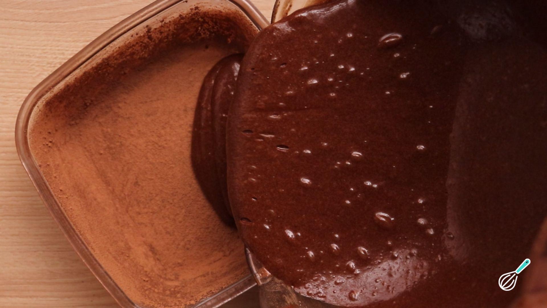 Despeje em uma forma untada com manteiga e chocolate em pó e leve para assar em forno preaquecido 200 graus de 20 a 30 minutos.