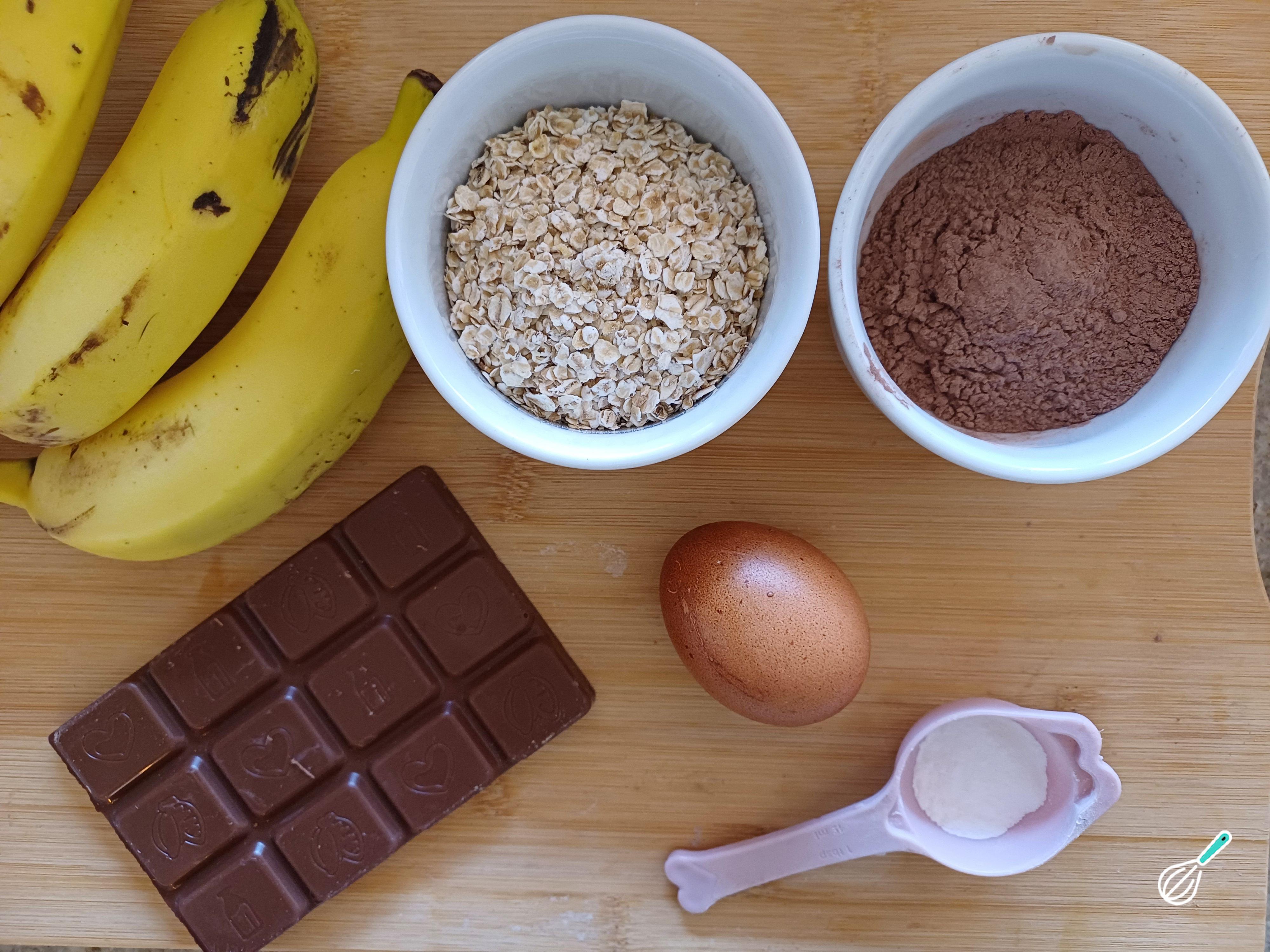 Separe os ingredientes para fazer o seu brownie de banana com aveia.