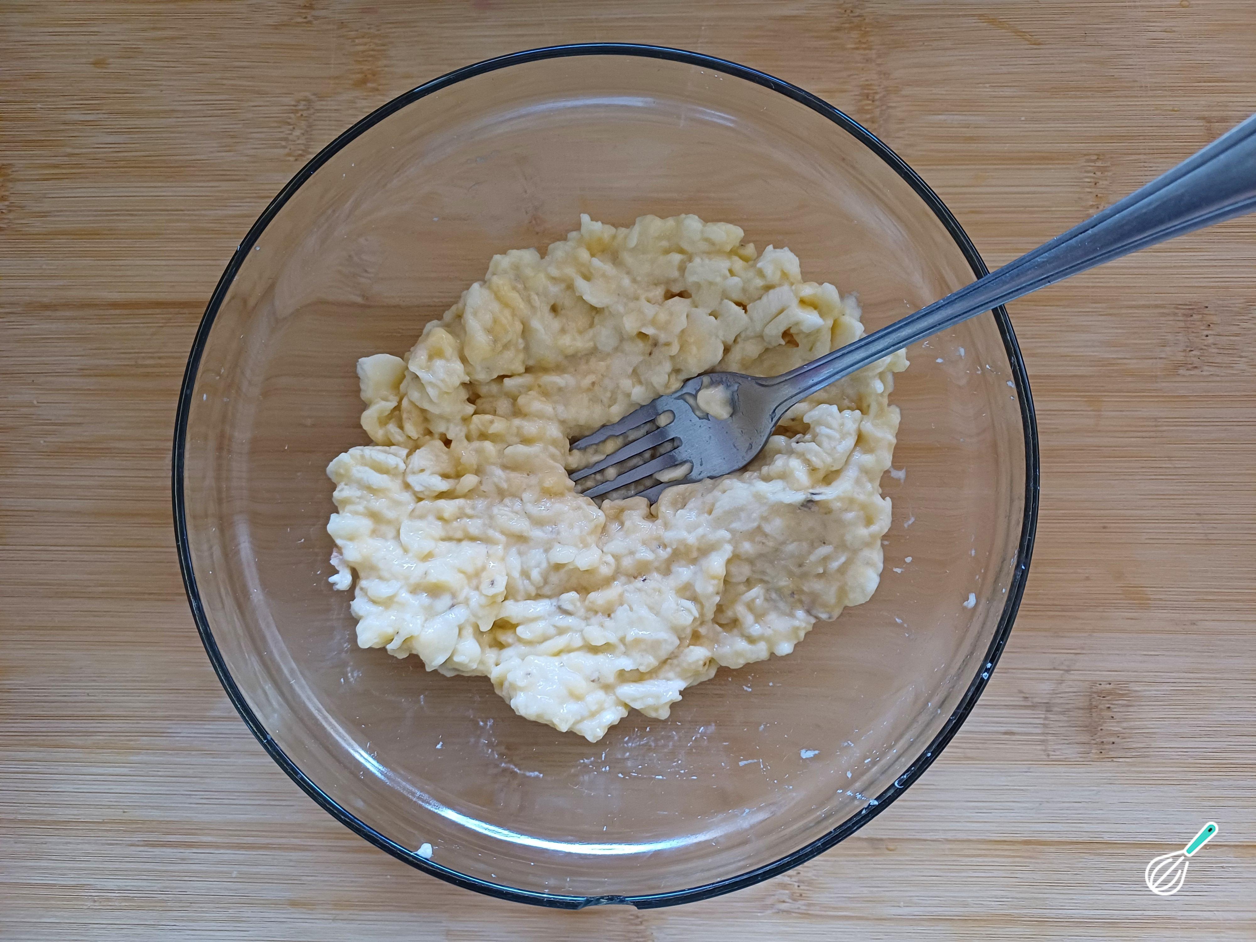 Em uma tigela amasse bem as bananas com a ajuda de um garfo, até obter um purê.