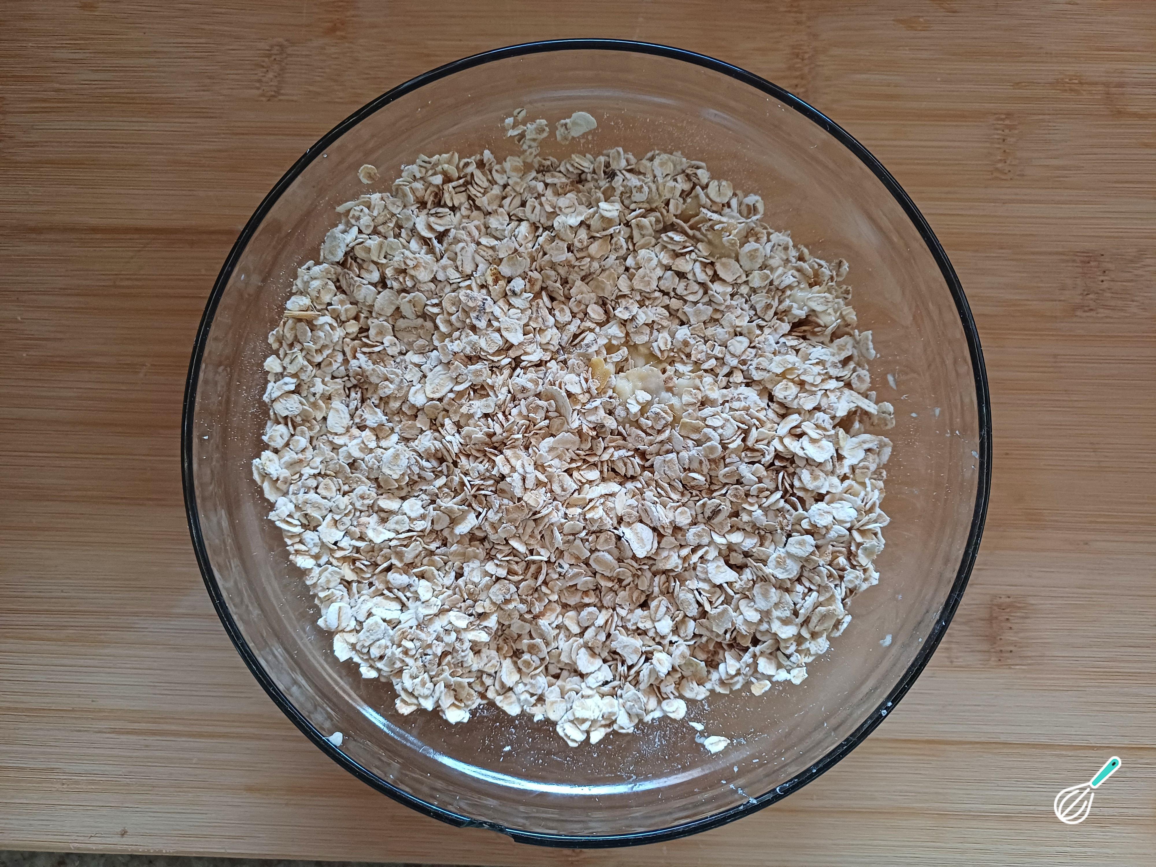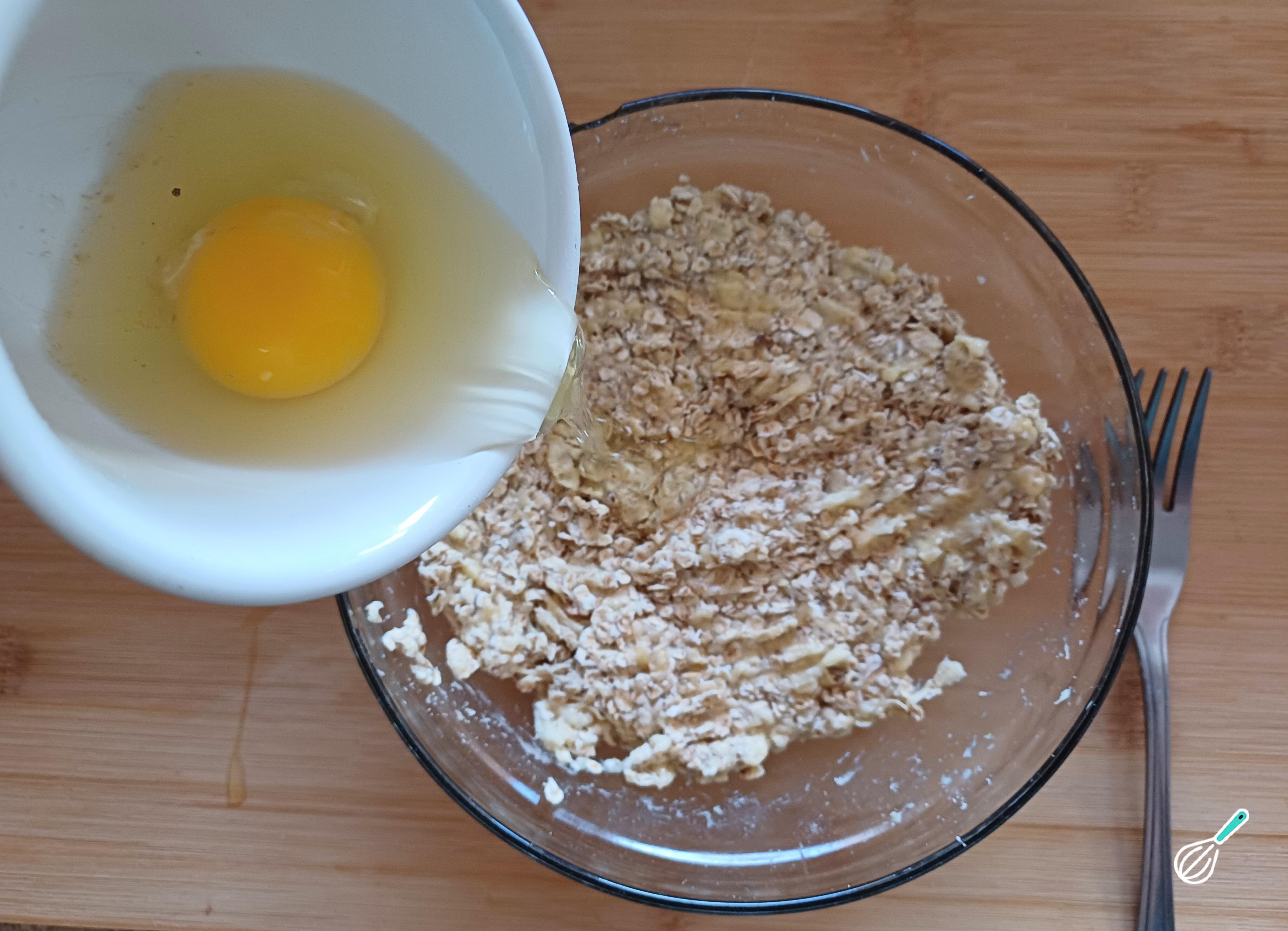 Adicione a aveia em flocos ao purê de banana e misture bem.
