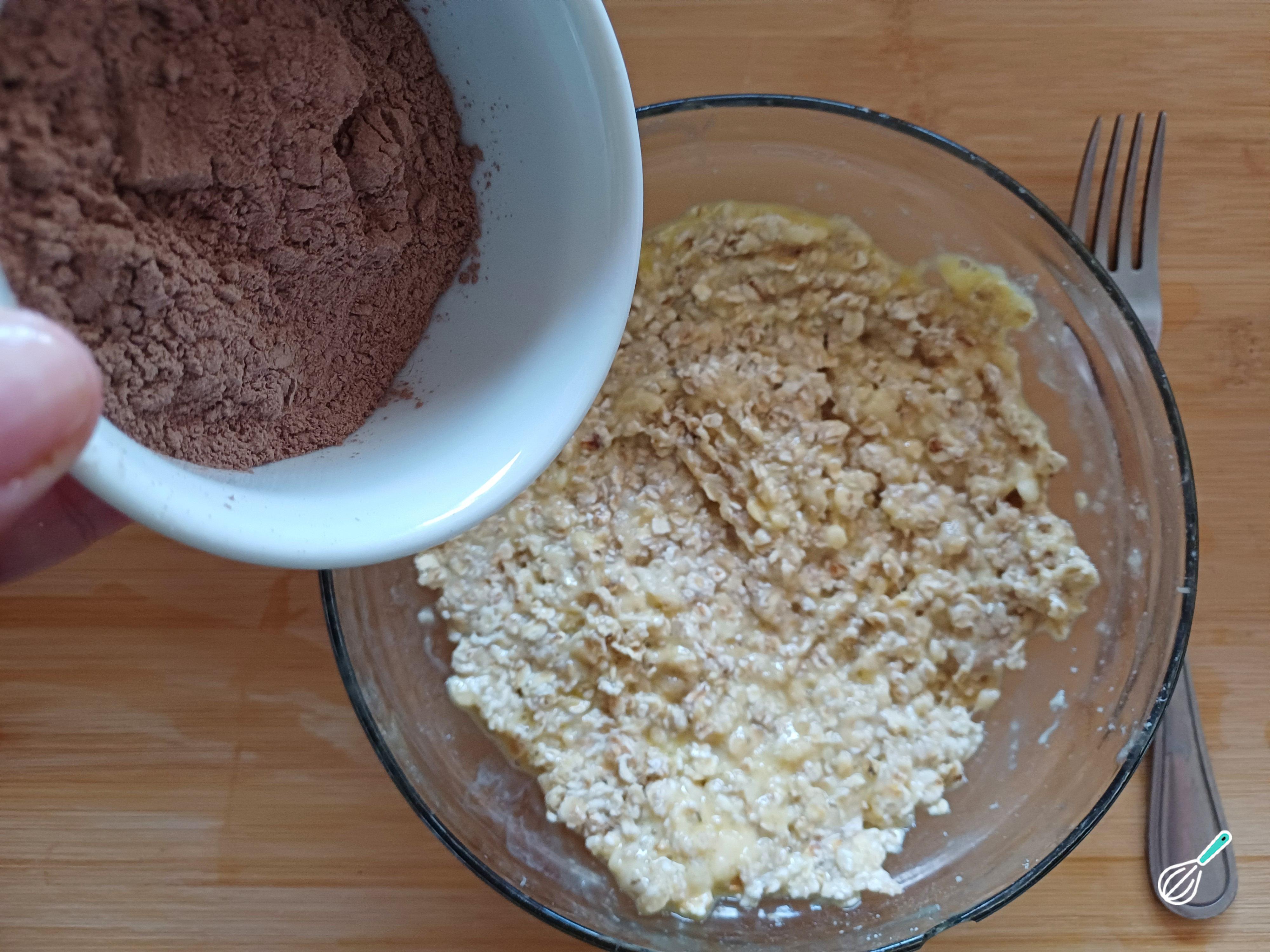 Adicione o cacau em pó e misture bem com um batedor até incorporar bem à massa.