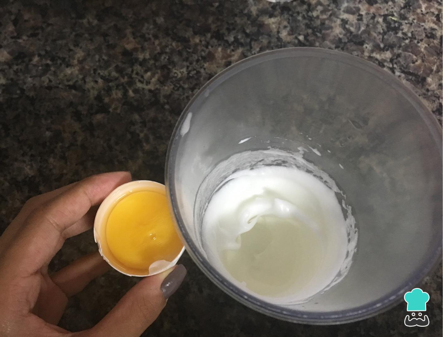 Prepare o brownie separando a clara da gema. Reserve a gema e bata a clara em ponto de neve.