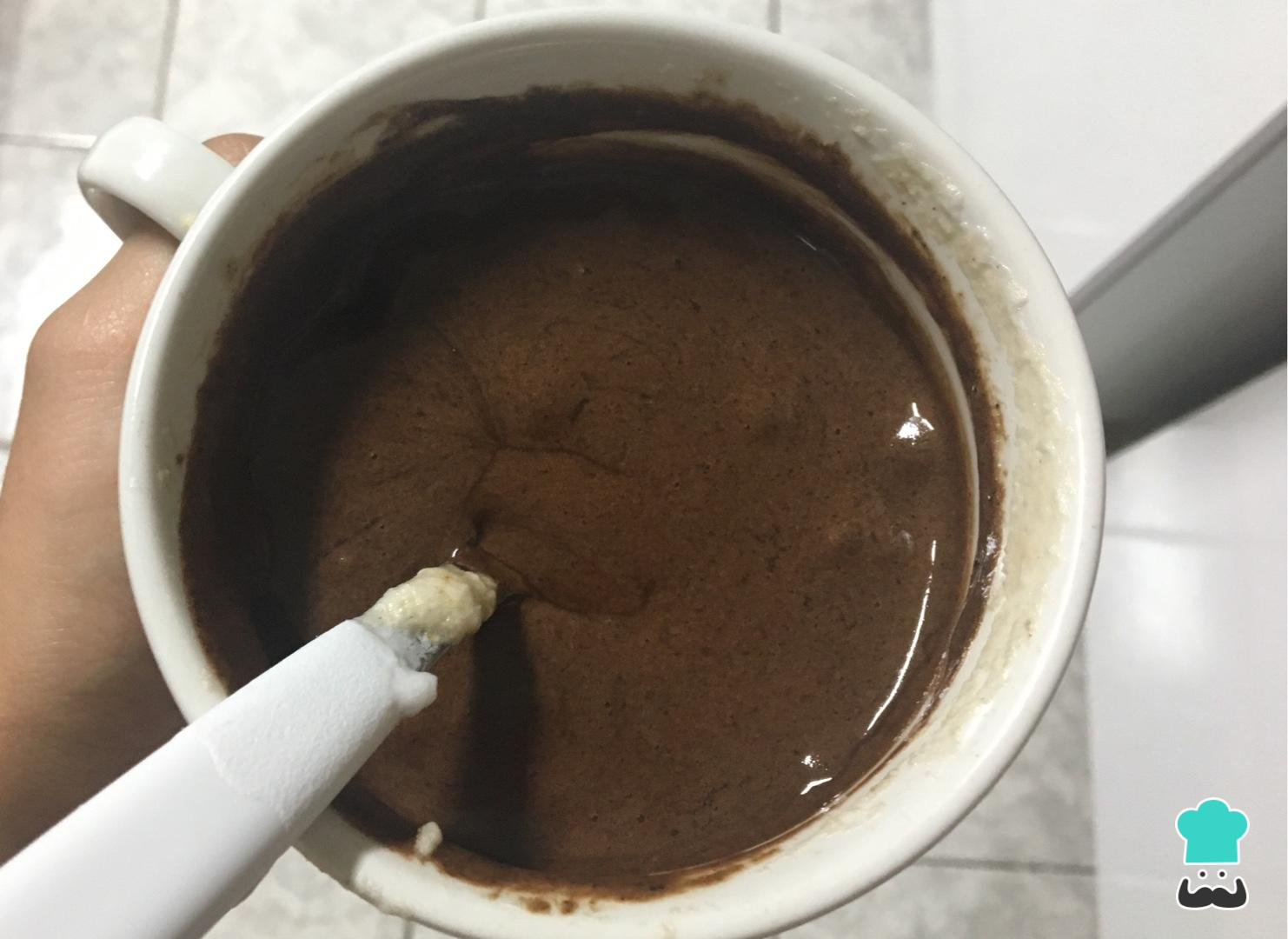 Agora junte com ao chocolate a clara, a gema, o xylitol e a farinha. Misture bem e leve para assar no microondas em potência máxima por 3 minutos. Outra opção é assar no forno em uma forma untada pequena.