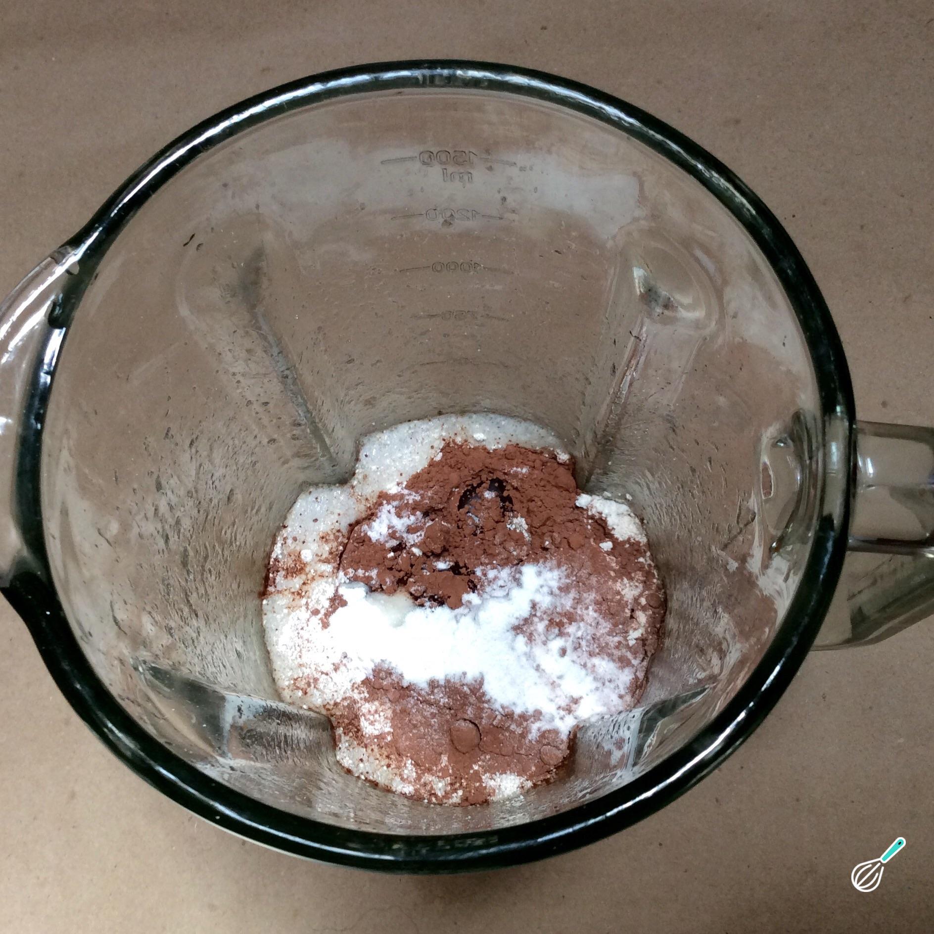 Em seguida adicione a essência de baunilha e todos os ingredientes secos. Bata para misturar.
