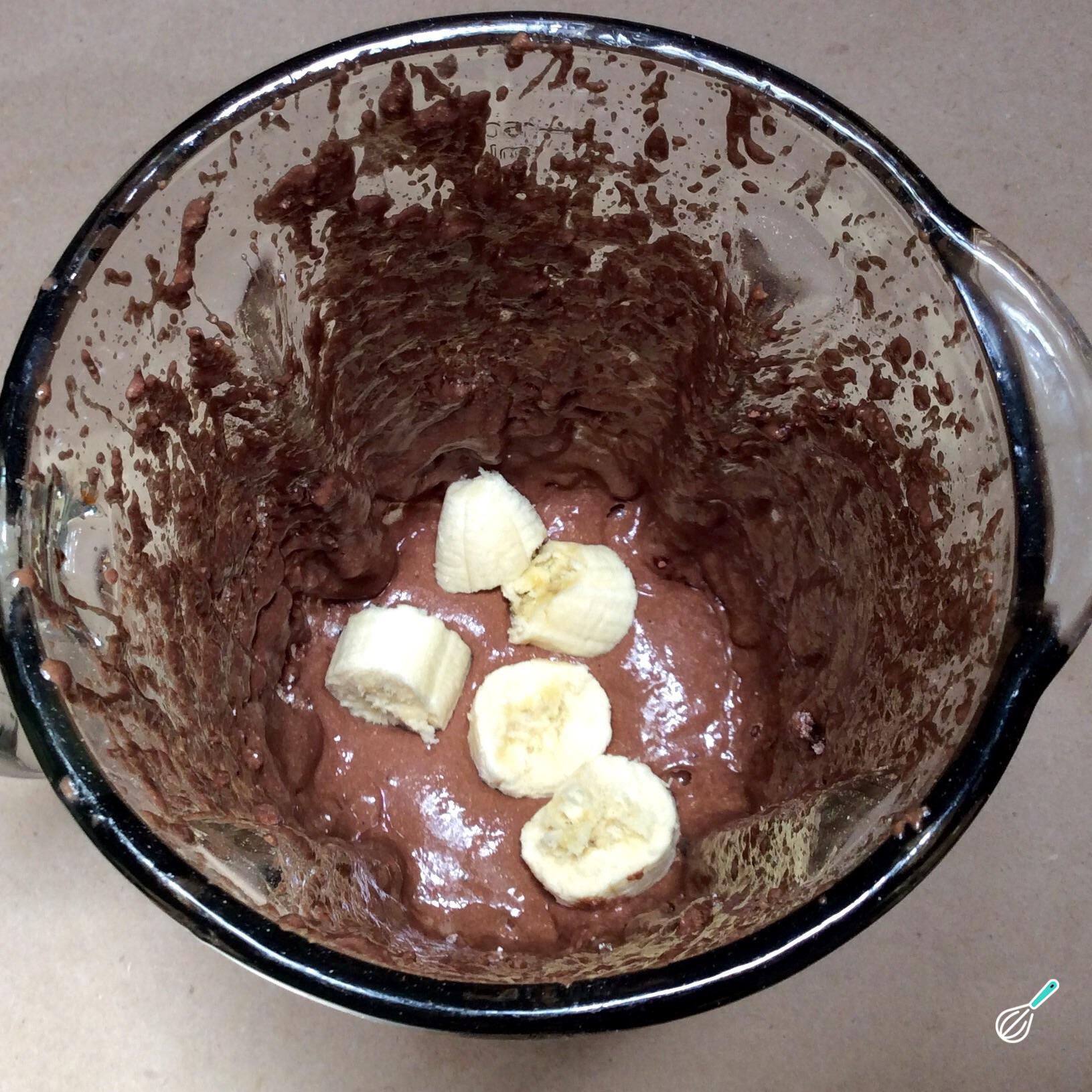 Finalmente acrescente a banana cortada em pedaços e bata muito bem uma última vez.