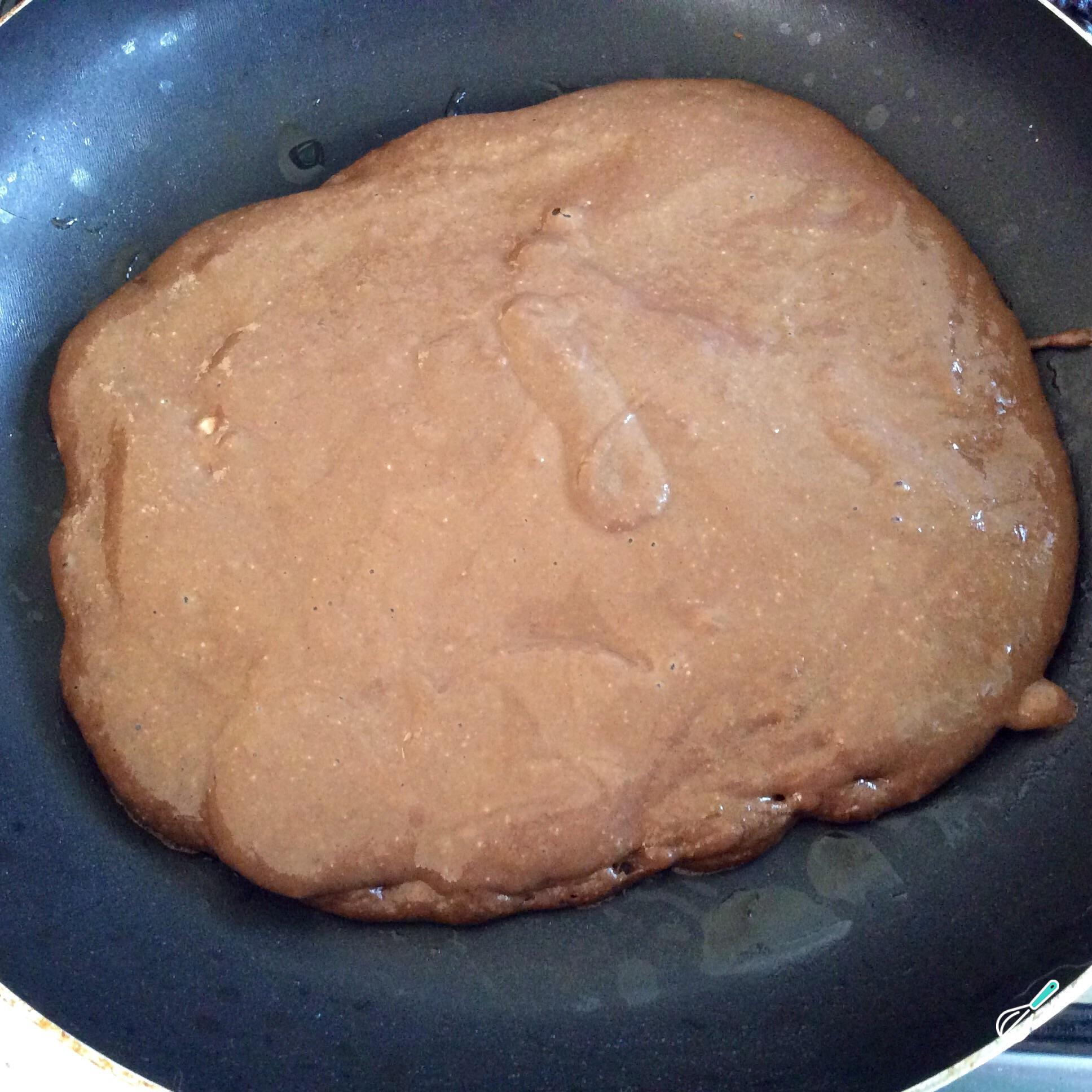 Coloque a mistura brownie light numa frigideira untada com o azeite de oliva, tentando formar um retângulo. Se quiser adicione as amêndoas, e cozinhe tampado por 4 minutos em fogo baixo. Depois vire o brownie ao contrário e cozinhe por mais 4 minutos, desta vez sem tampar.