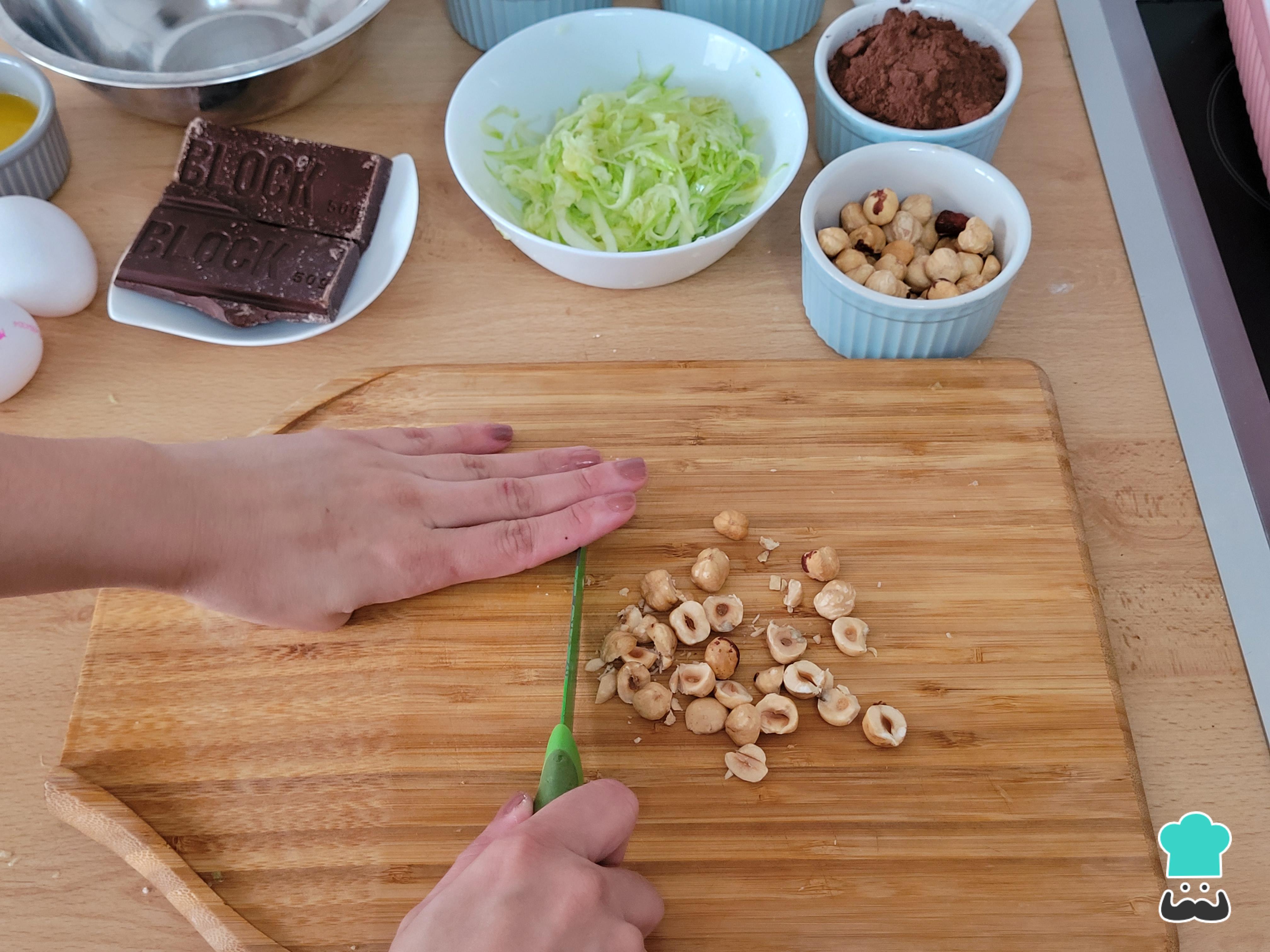 Pique as avelãs grosseiramente para que você ainda tenha uma textura no recheio.