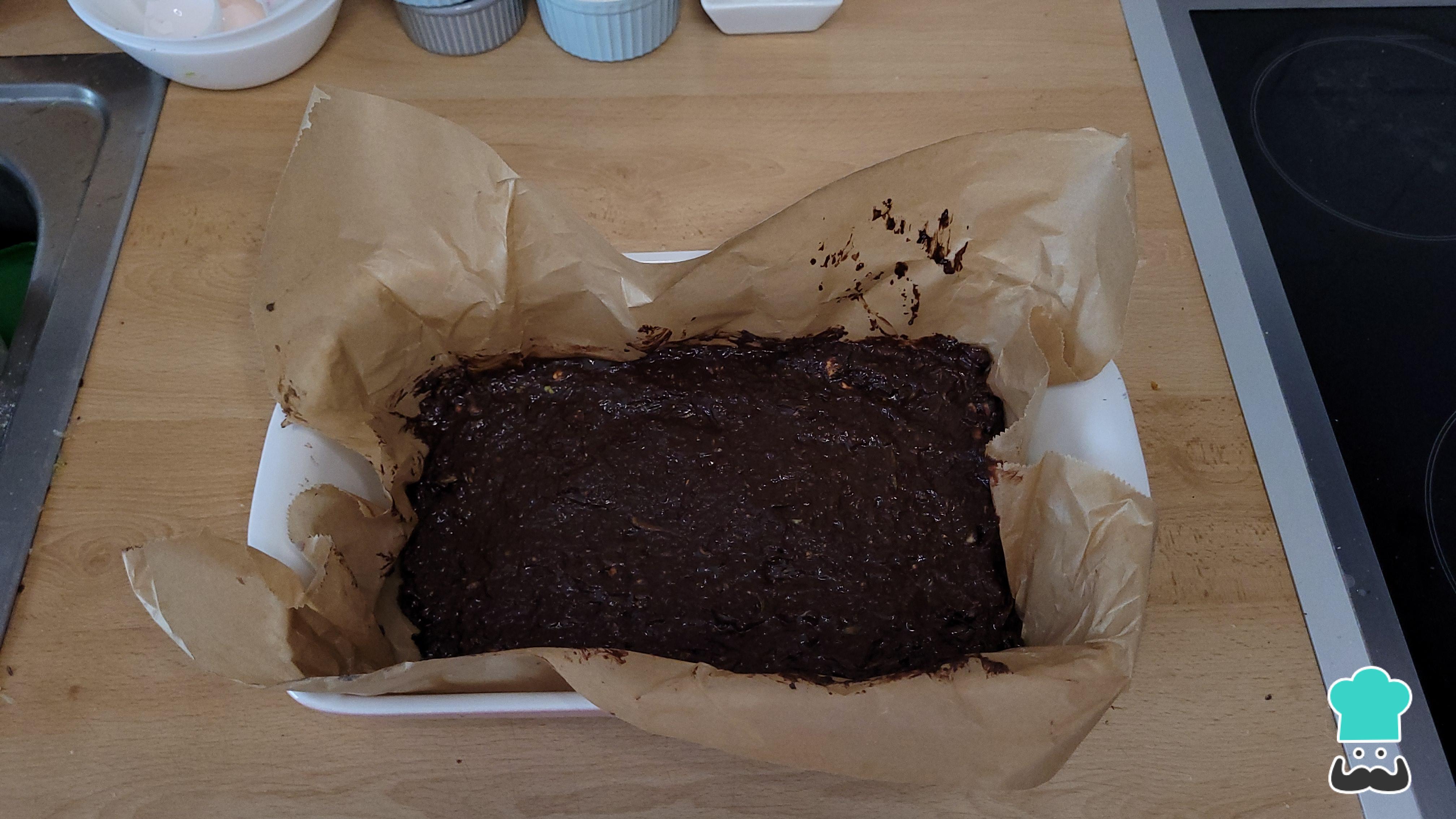 Dica: Depois de incorporar o cacau e a aveia, é mais fácil incorporar os outros ingredientes sólidos com uma espátula porque a massa fica bem densa.