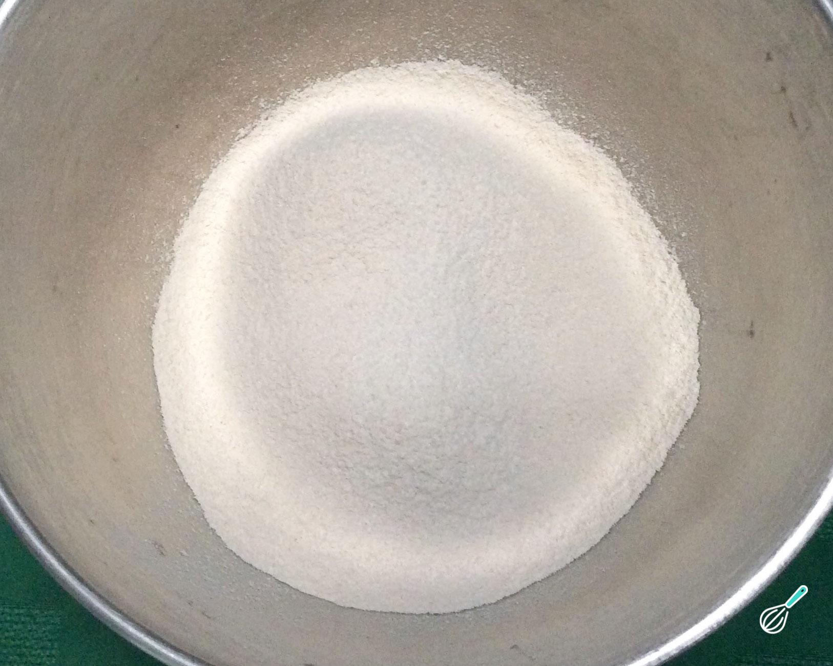 Em uma tigela coloque a farinha de aveia peneirada e o fermento. A farinha de aveia pode ser integral, nesse caso não precisa peneirar e poderá ser necessário aumentar a quantidade de líquidos.