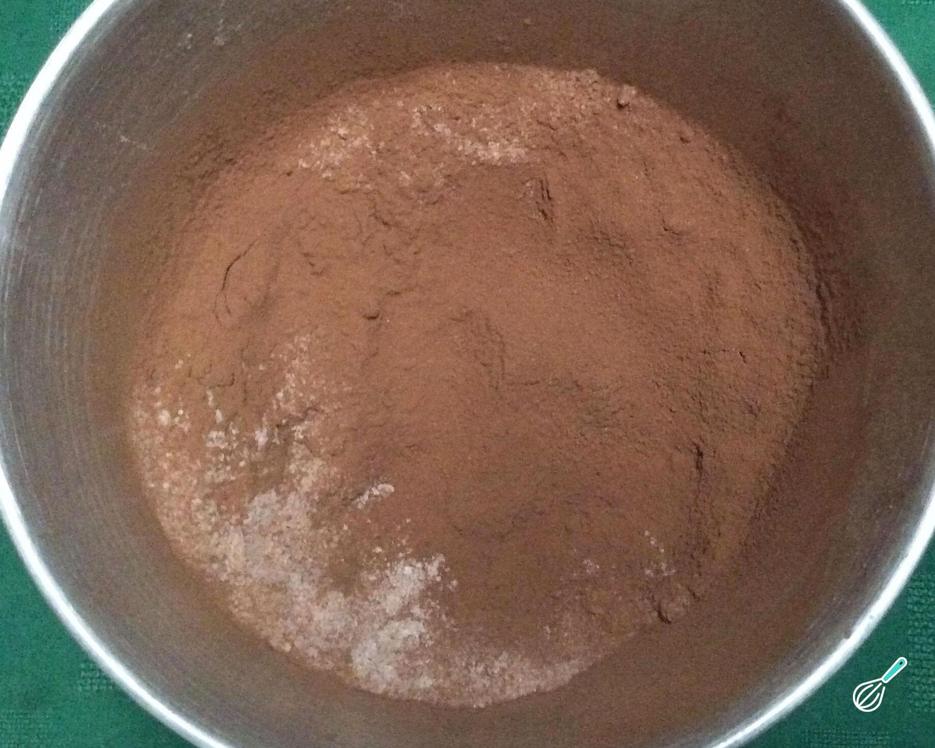 Acrescente o cacau peneirado e misture. Para obter brownies de sabor suave, dê preferência ao cacau em pó alcalino; se preferir brownies de sabor mais intenso, use o cacau em pó natural.