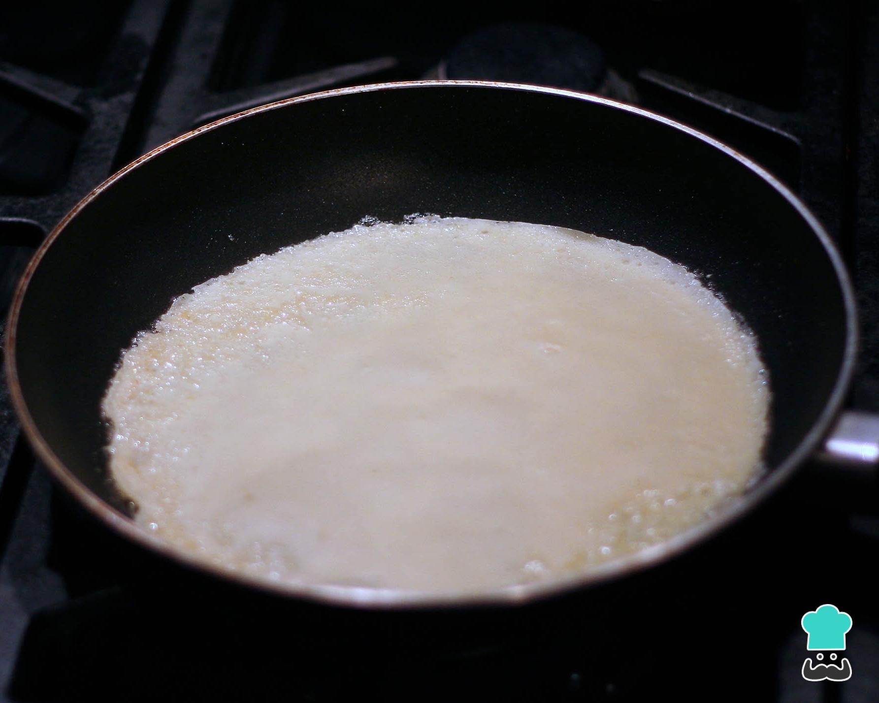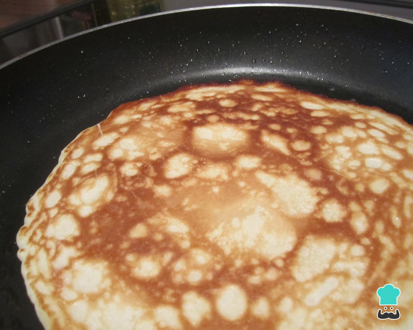 Quando a panqueca estiver consistente vire-a para dourar do outro lado também. Depois retire para um prato e repita do mesmo jeito com a restante massa.