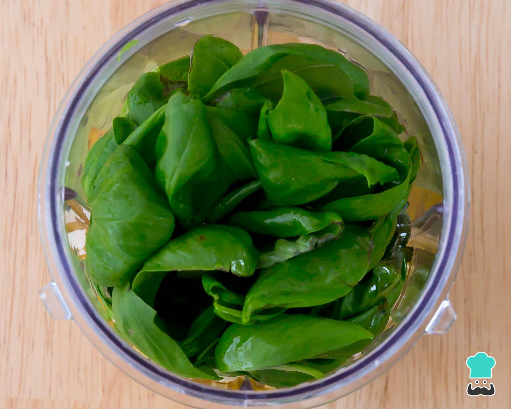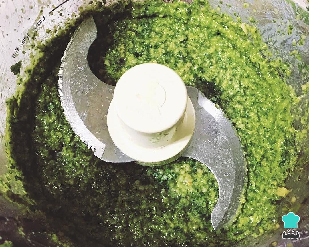 Prove e acerte o sabor a gosto com sal e pimenta. Se você preferir um molho pesto menos espesso, adicione um pouco mais de azeite.