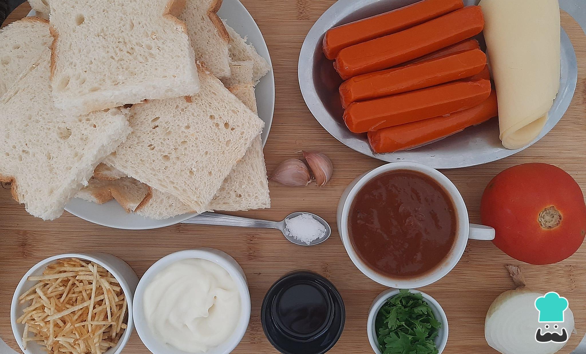Separe os ingredientes necessários para preparar essa receita de cachorro quente de forno com pão de forma.