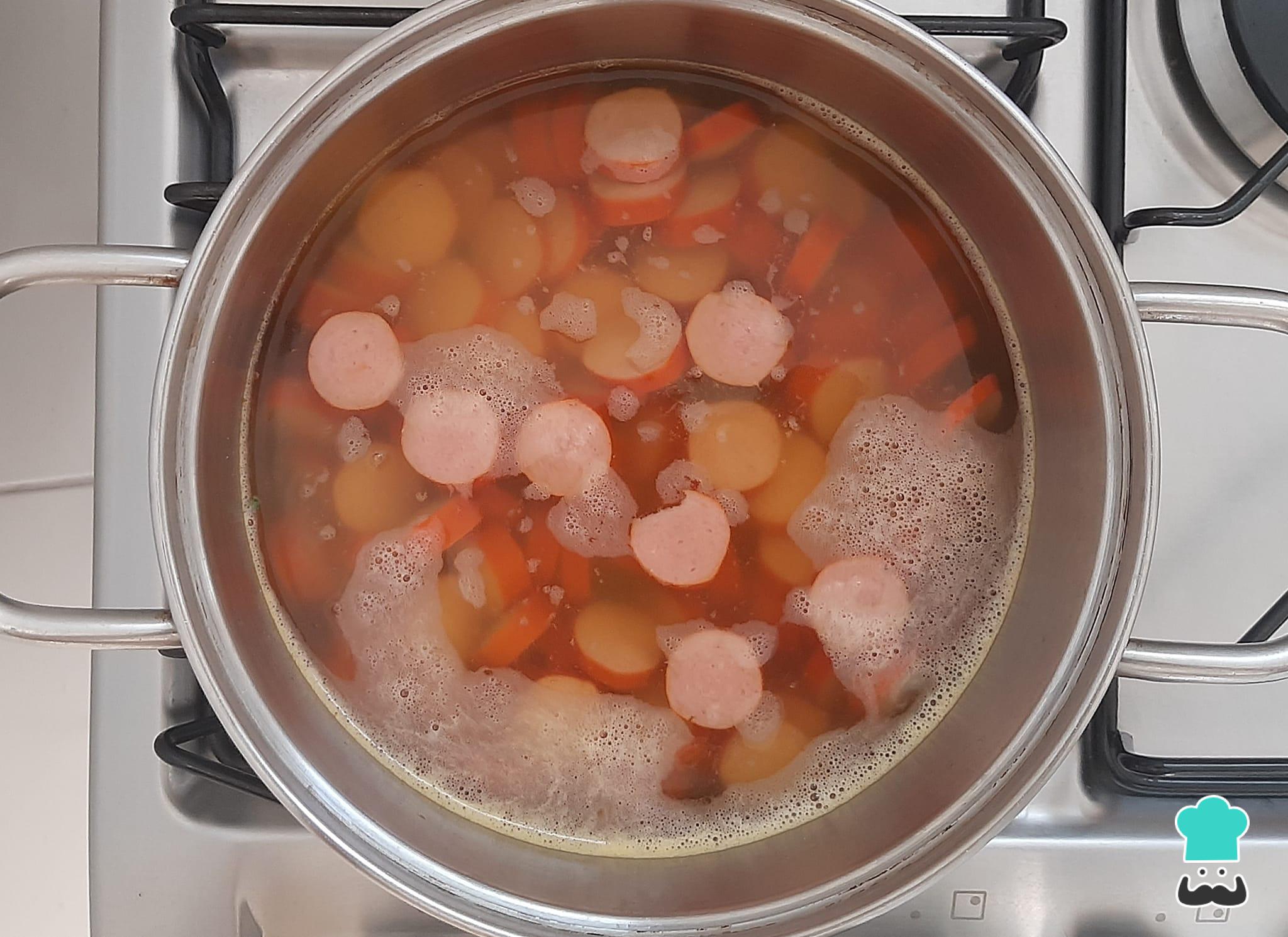Ferva as salsichas por cerca de 5 minutos.
