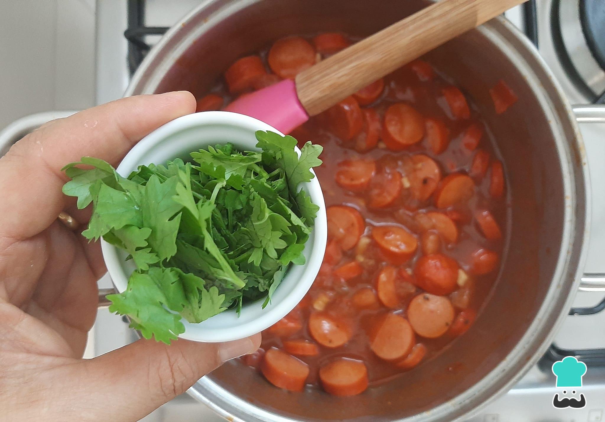 Desligue o fogo e acrescente o cheiro verde ou o coentro. Reserve.