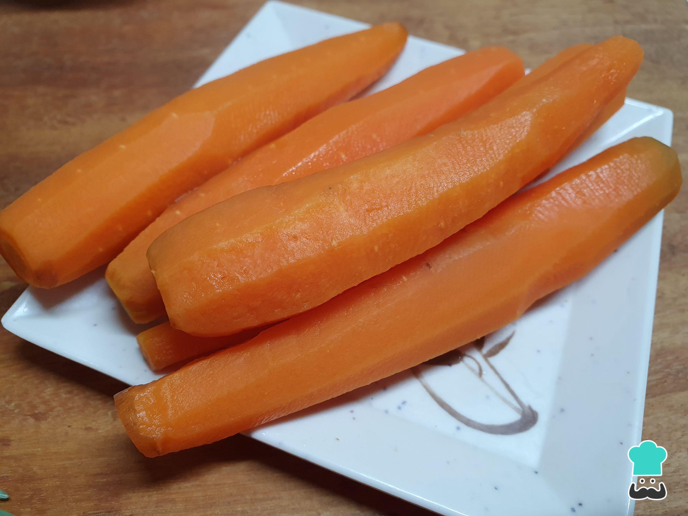 Comece descascando as cenouras e levando-as a cozinhar em água por aproximadamente 10 minutos ou até que fiquem macias. Escorra a água e reserve.