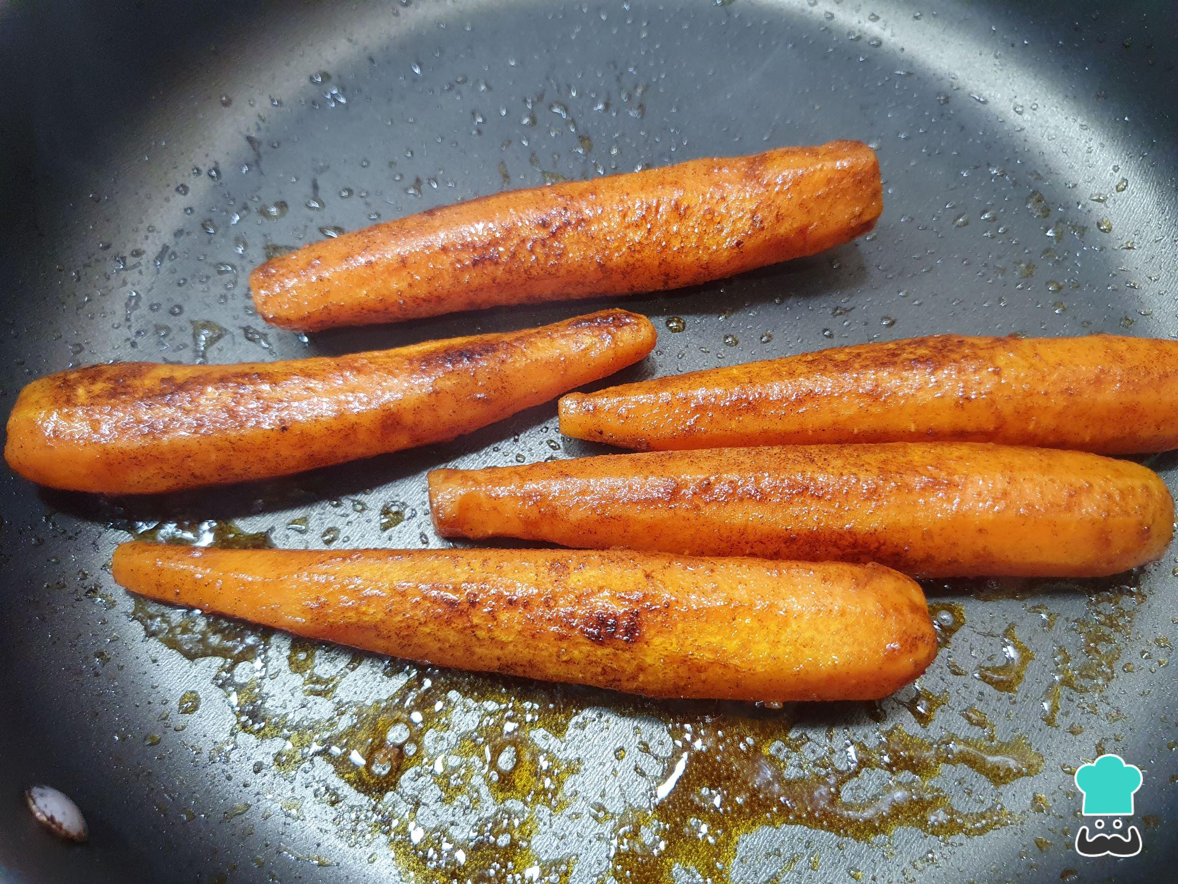 Numa outra frigideira ou panela toste/grelhe as cenouras de todos os lados até que fiquem bem douradas.