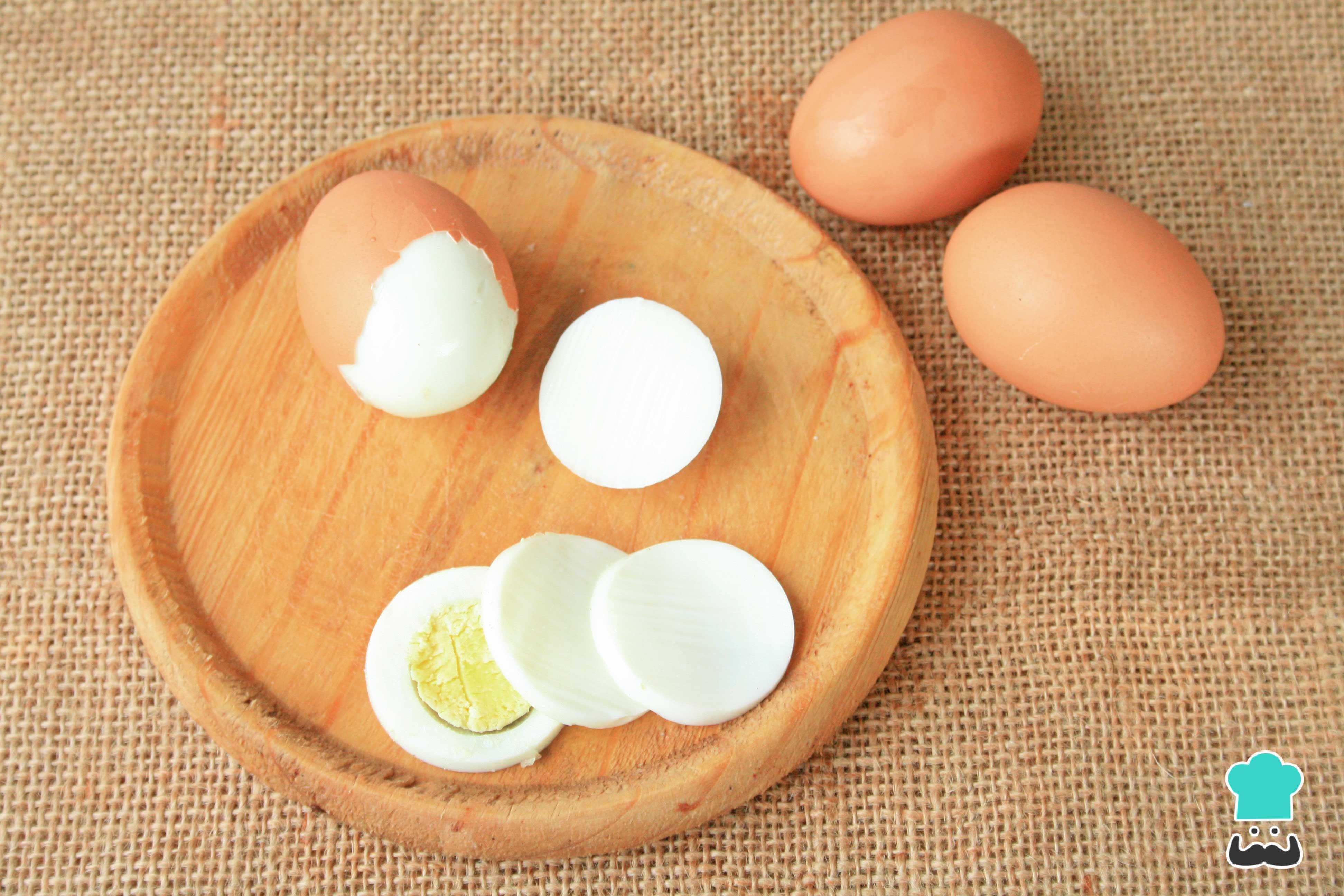 Os ovos são um ingrediente opcional nesta salada, mas que a deixará mais completa. Leve ao fogo uma panela com os ovos inteiros e cubra com água. Deixe ferver por 5 a 10 minutos, dependendo do ponto que você gostar dos seus ovos - veja como saber se o ovo está cozido. Retire os ovos da água, deixe esfriar, descasque e fatie.