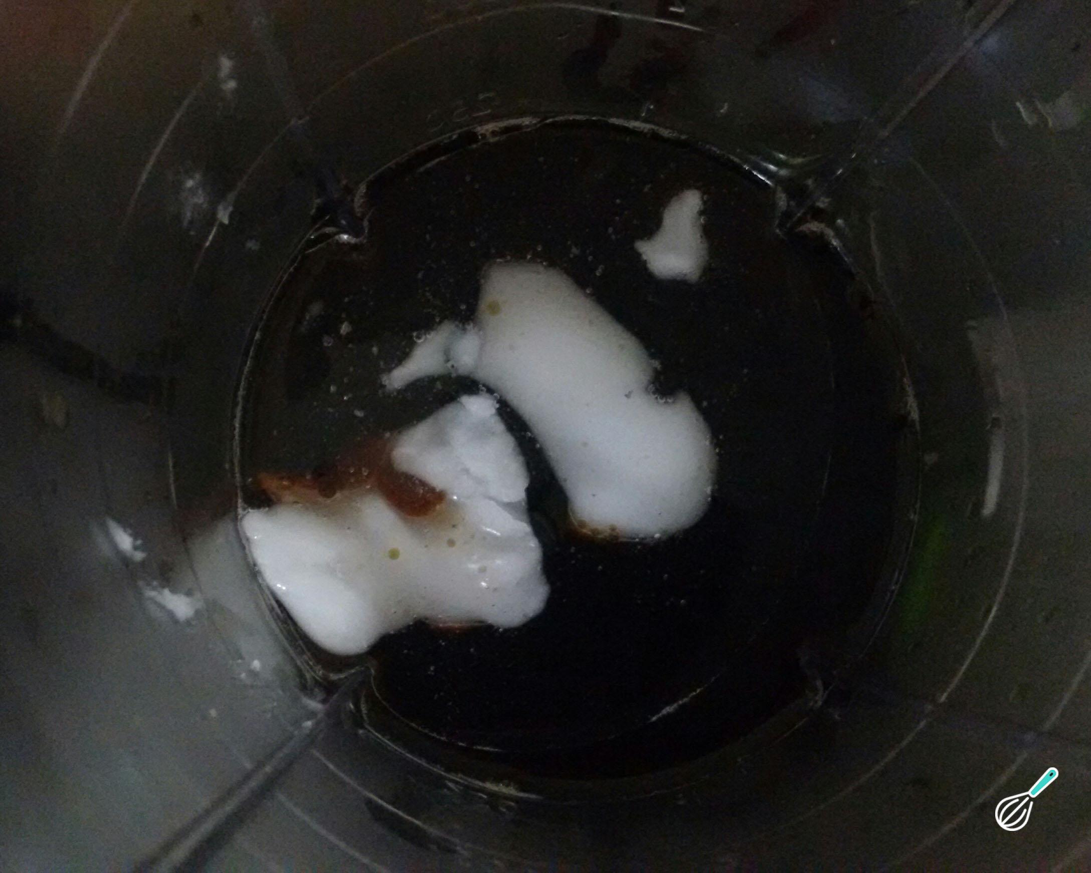 Bata em velocidade máxima até dissolver o óleo e derreter o adoçante.