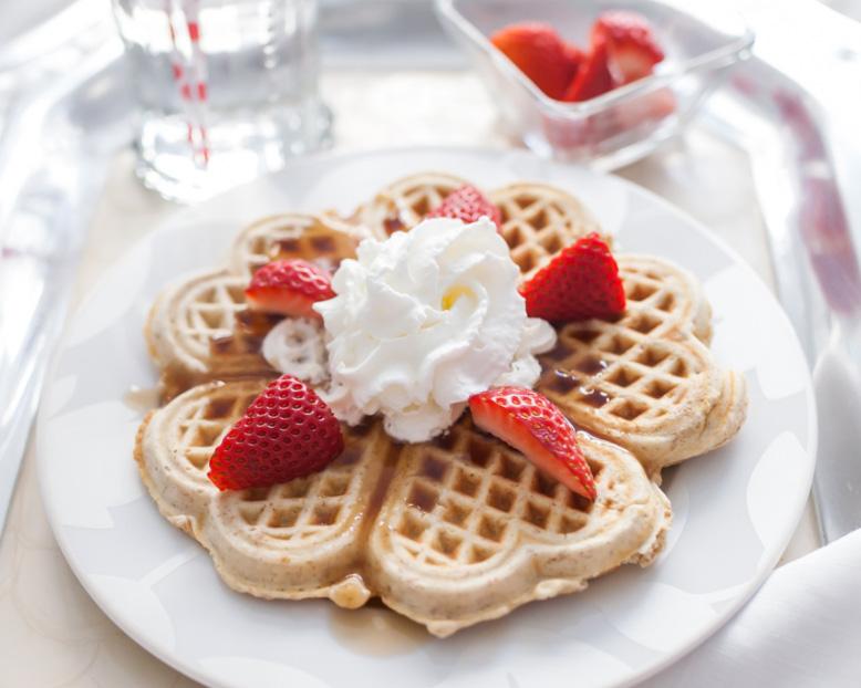 Depois de assar seus waffles retire para um prato e decore com chantilly e morangos. Complete o cardápio de café da manhã romântico com estas receitas e sugestões fáceis de preparar: