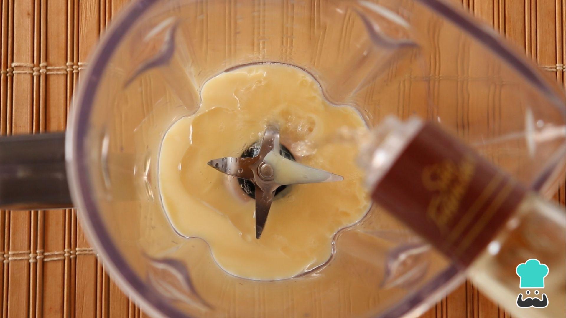 Enquanto isso bata no liquidificador o leite condensado e a cachaça.