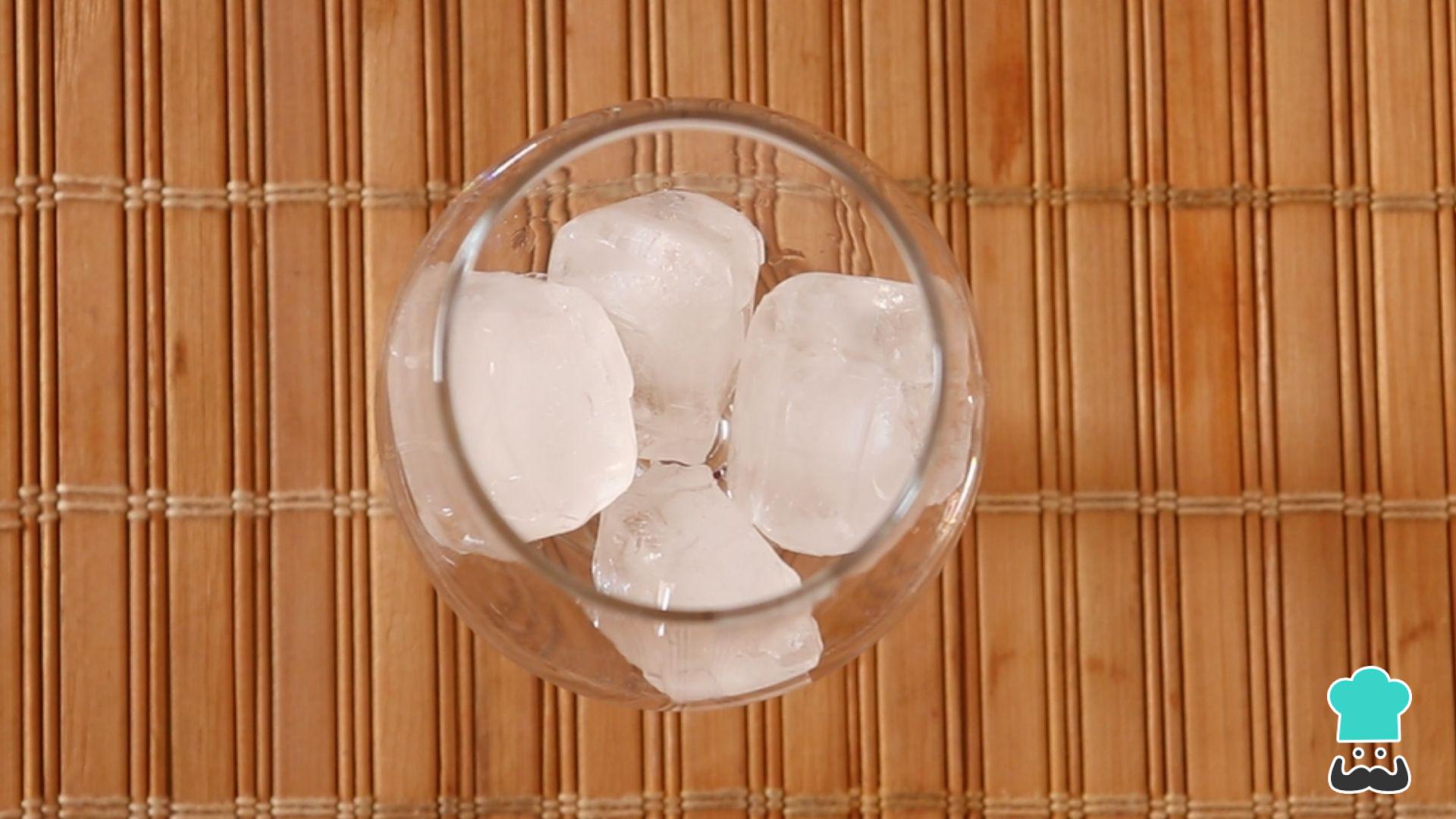 Coloque as pedras de gelo no copo onde você servirá a caipirinha de abacaxi.