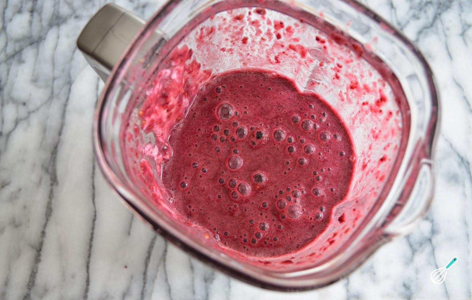 Após o tempo indicado, deixe que a calda de cereja esfrie um pouco e bata-a no liquidificador, para obter uma mistura homogênea. Pode bater por mais ou menos tempo, dependendo se gosta de sentir pedaços de fruta ou não.