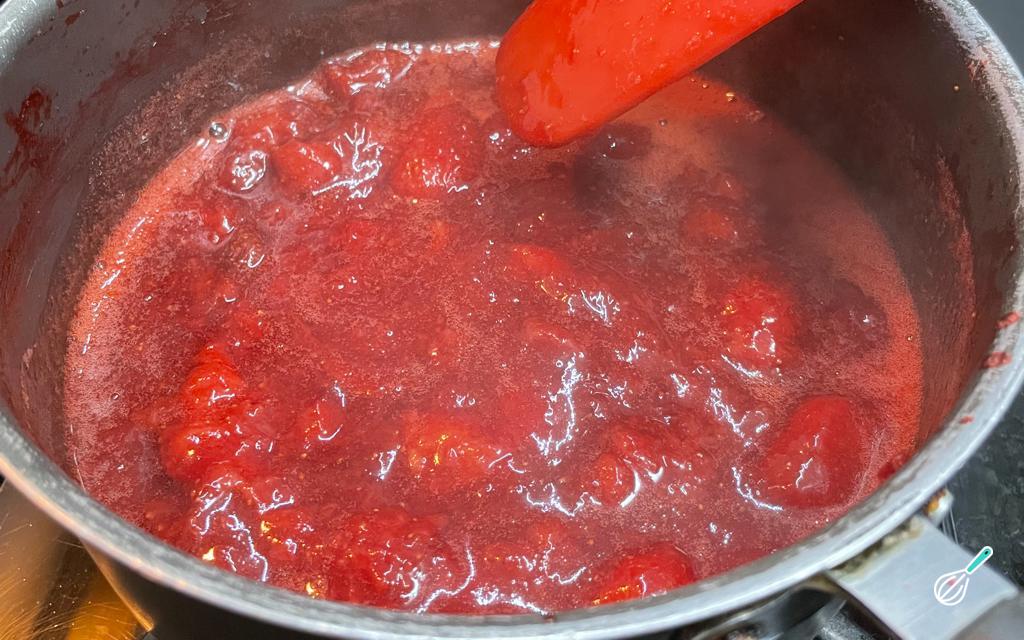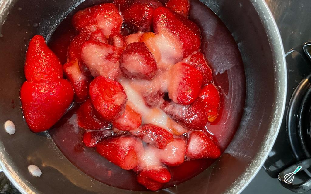 - Corte os morangos em pedaços uniformes para garantir que cozinhem de maneira uniforme e liberem seu suco.