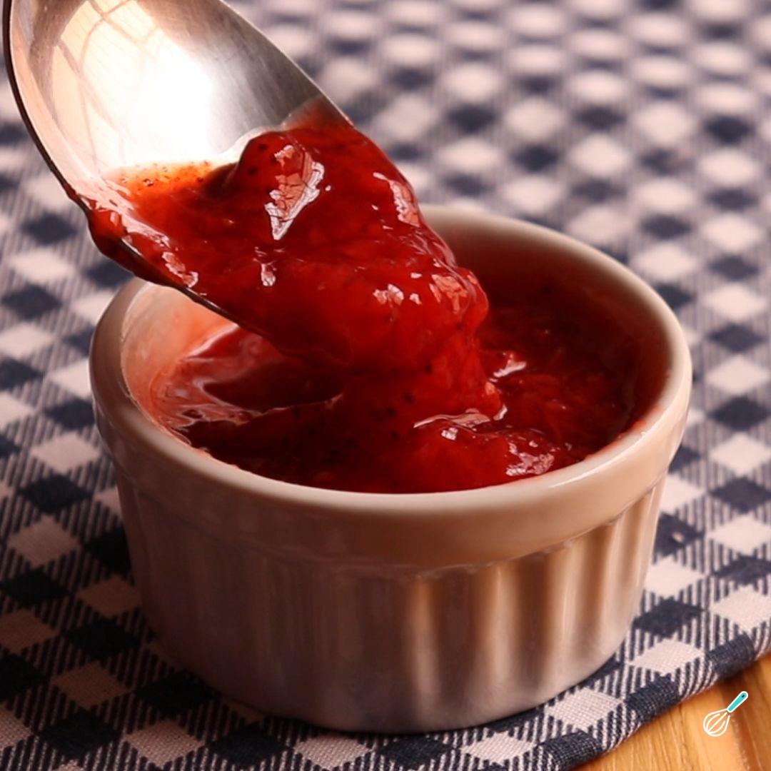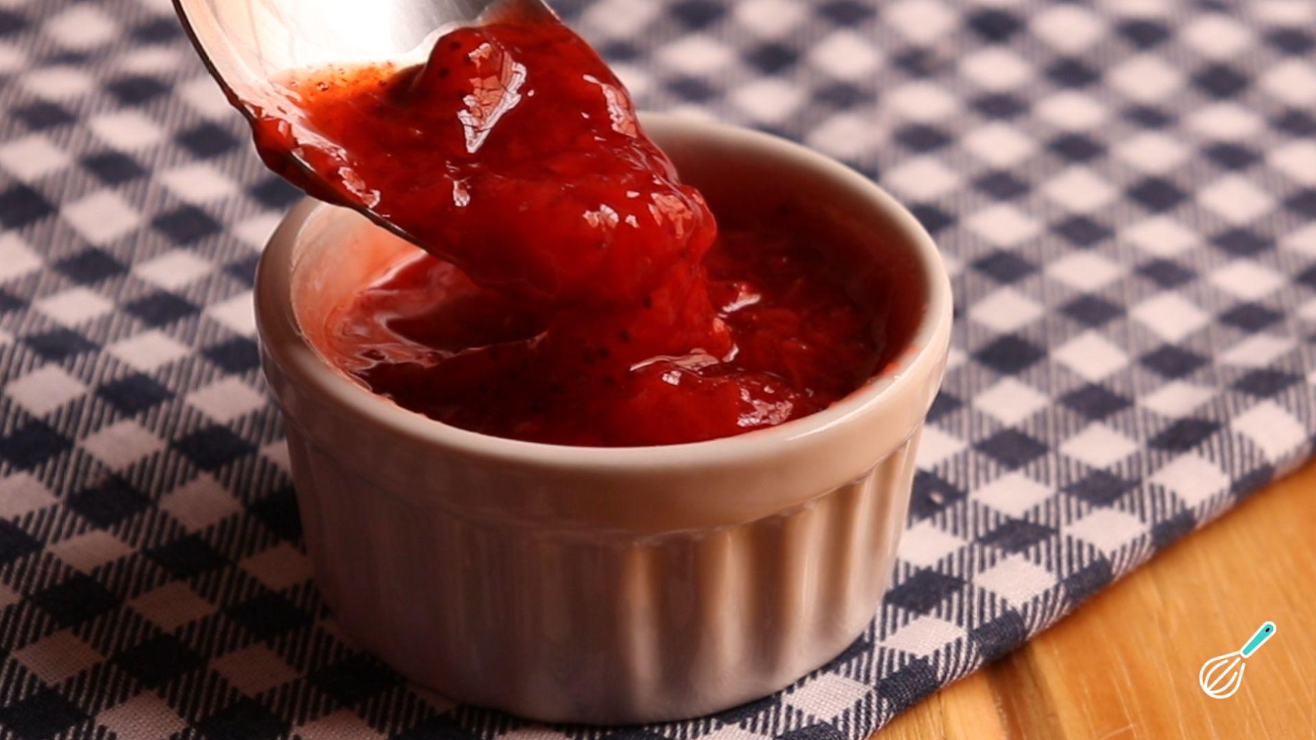 Espere esfriar completamente e sirva a sua calda de morango para sorvete em seguida!