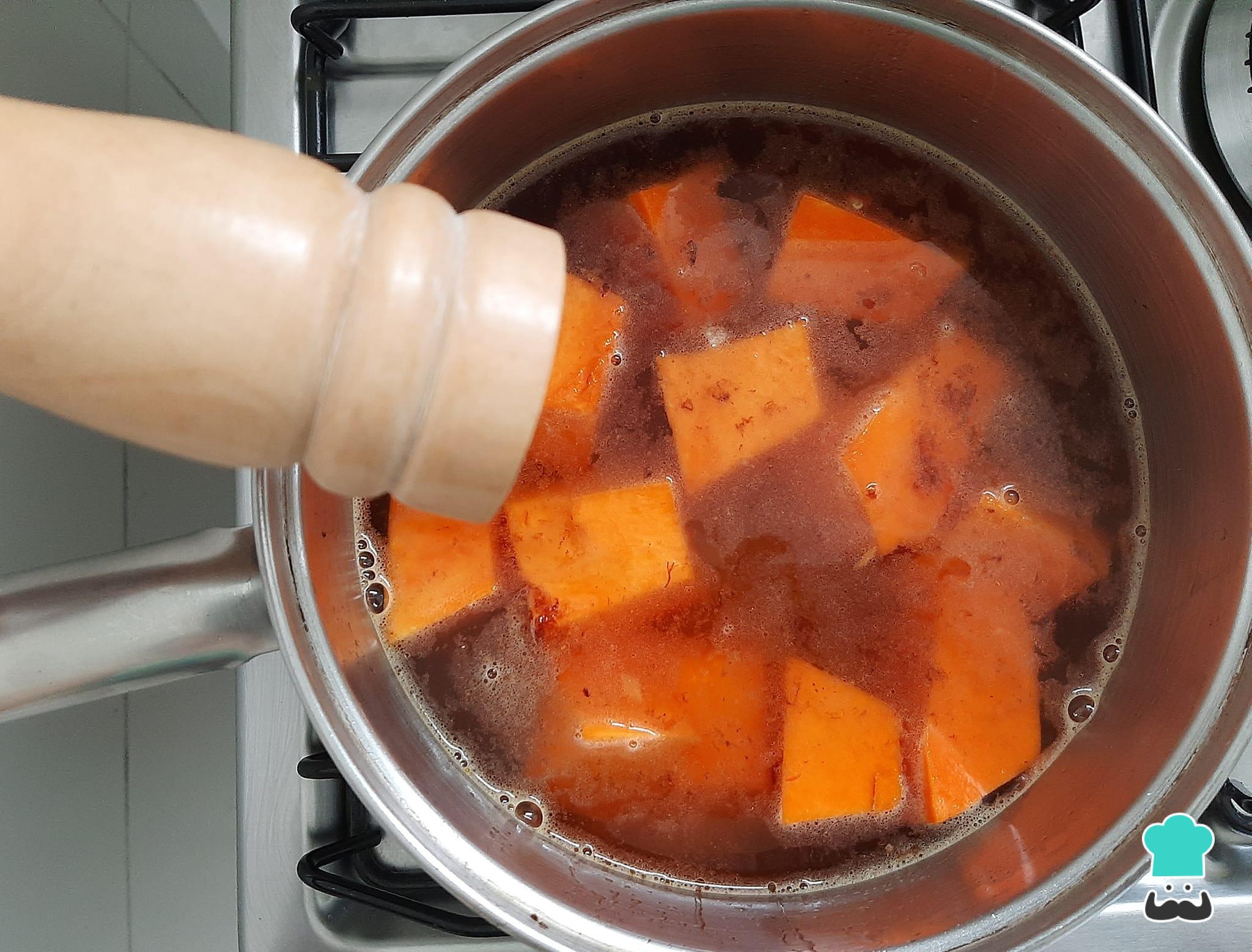 Tempere com sal e deixe cozinhar até a abóbora ficar macia e cozida.