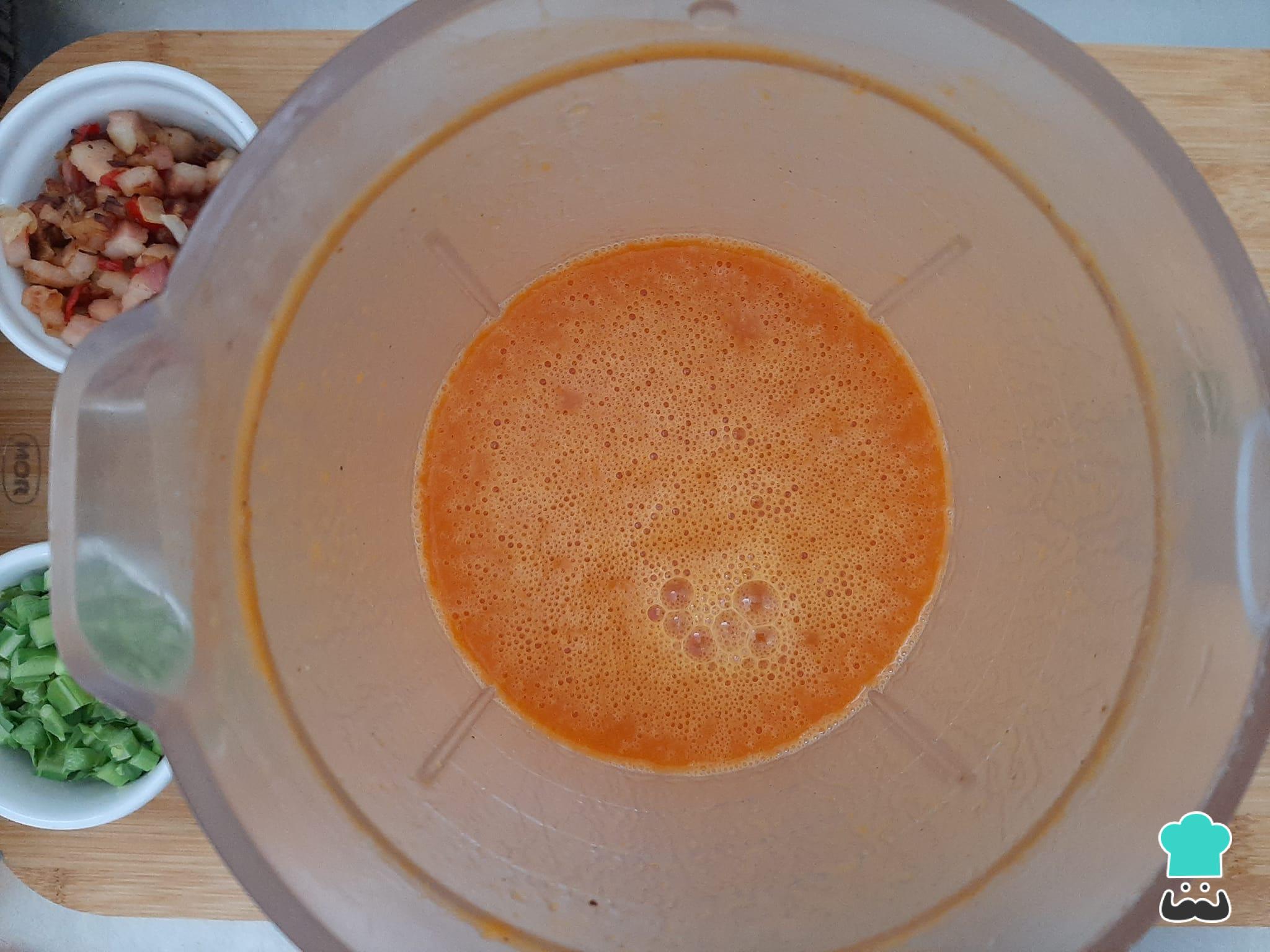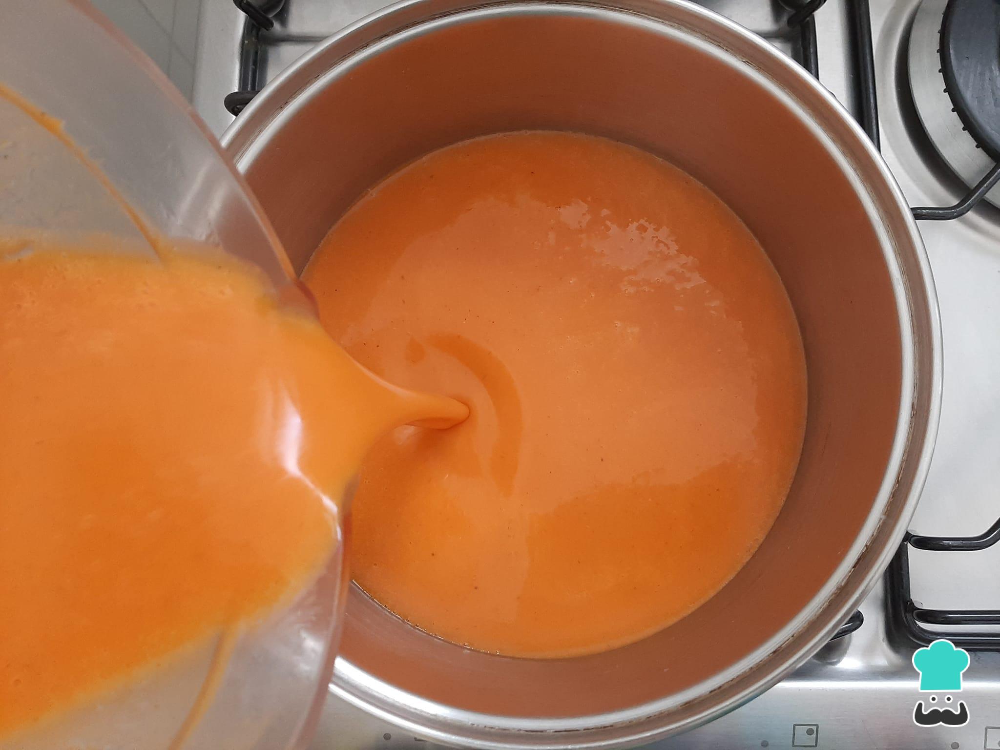 Quando a abóbora estiver cozida, bata tudo junto com o caldo do cozimento no liquidificador até que fique homogêneo.