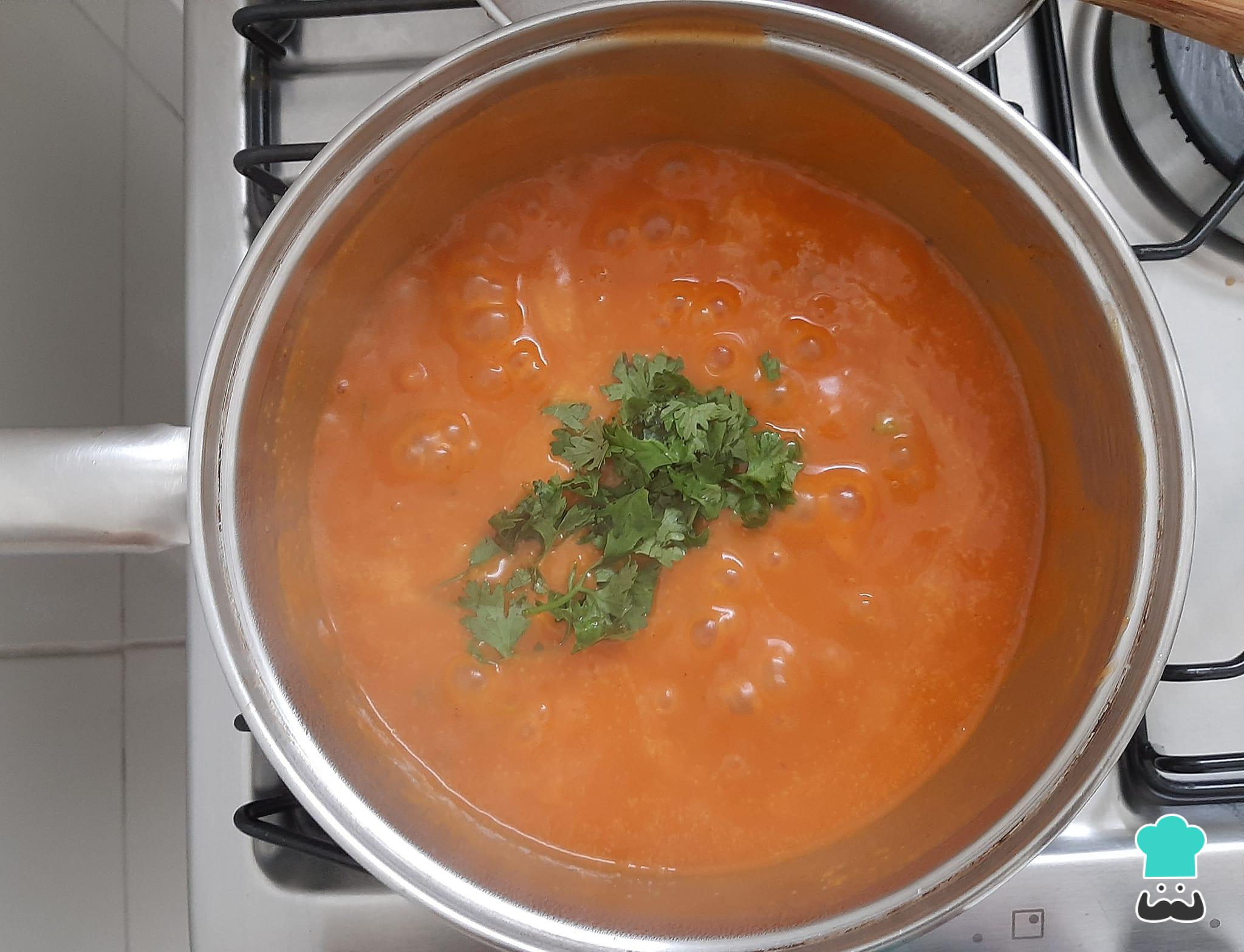 Desligue o fogo e adicione o coentro picado, misturando bem.
