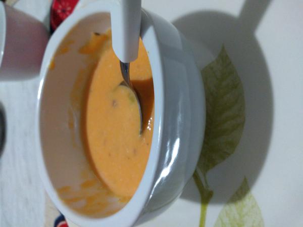 Bata a sopa no liquidificador e volte na panela. Junte o creme de leite, retifique o sal, tempere com pimenta do reino e cominhos e está pronto a servir este caldo de abóbora com creme de leite! Bom apetite e diga nos comentários o que você achou.