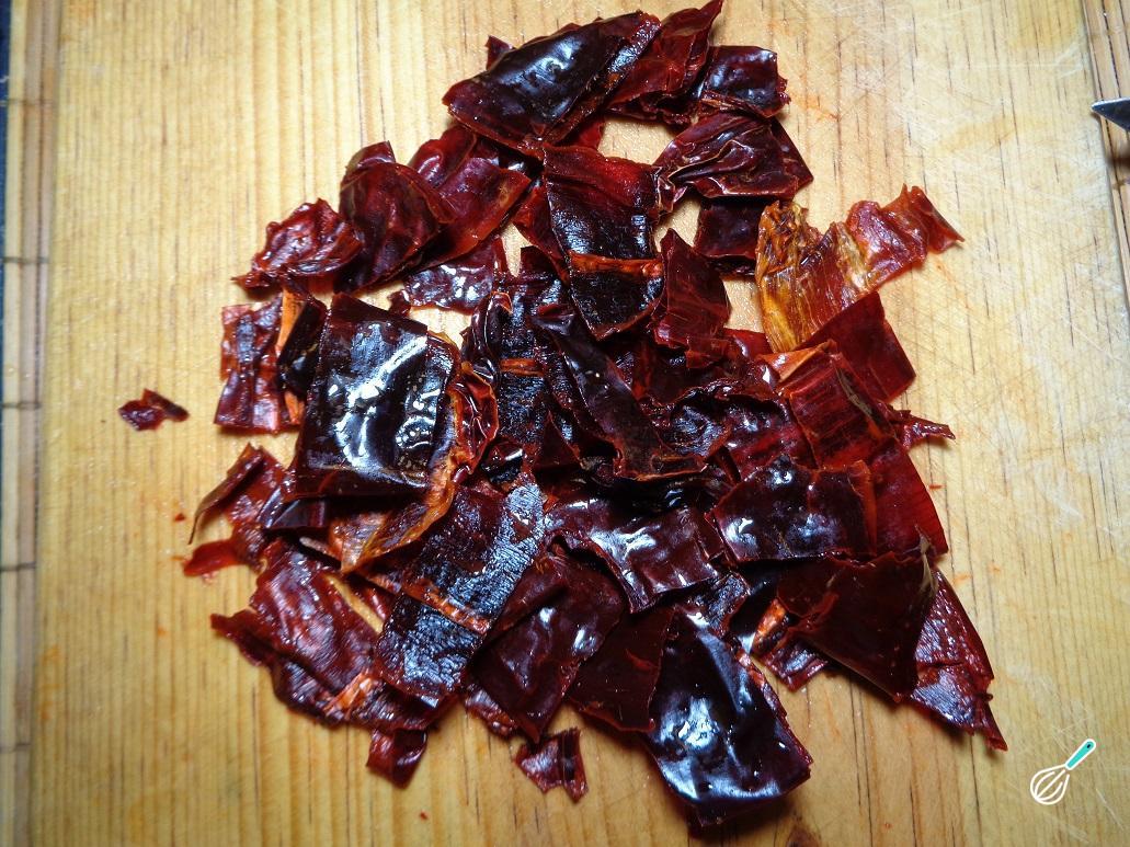 Limpe a pimenta calabresa de sementes e corte em pedaços pequenos, como poderá verificar na imagem abaixo.