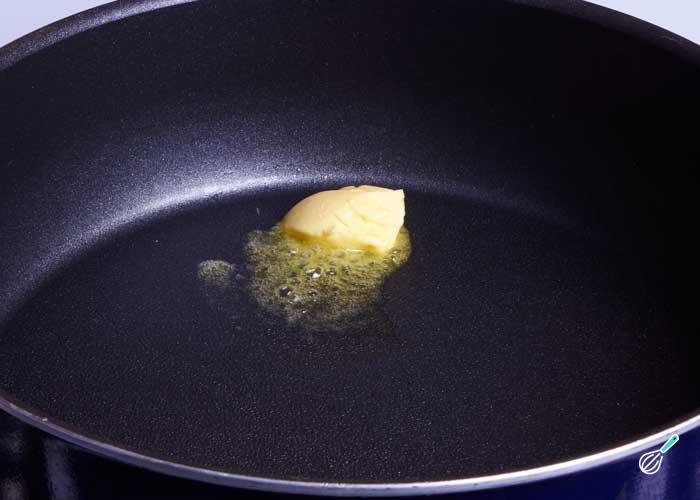 Para fazer caldo de dobradinha, comece por deixar a margarina derreter bem em uma panela. Junte o bacon e o alho e deixe dourar.