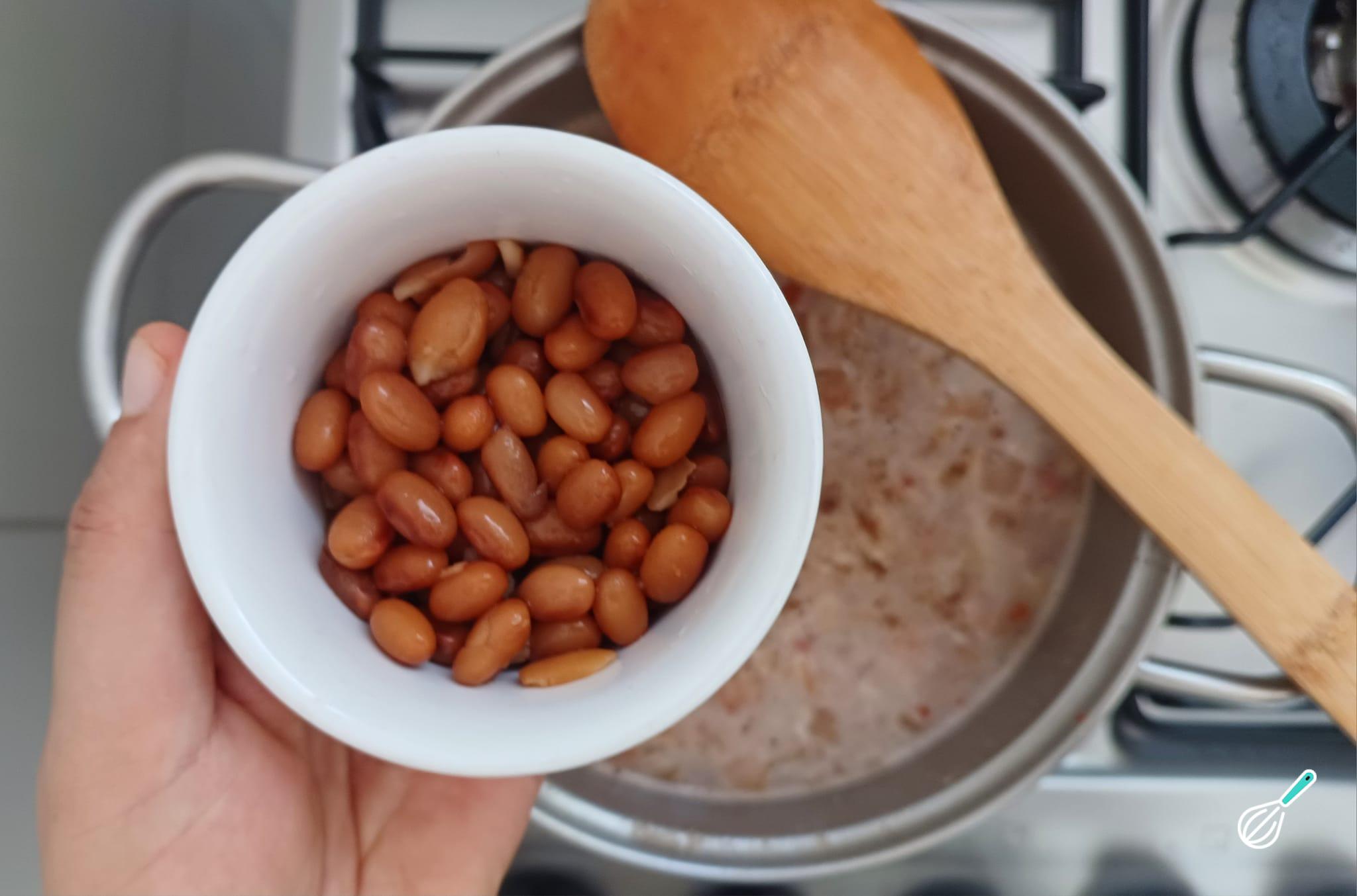 Adicione os grãos de feijão inteiros ao caldo.