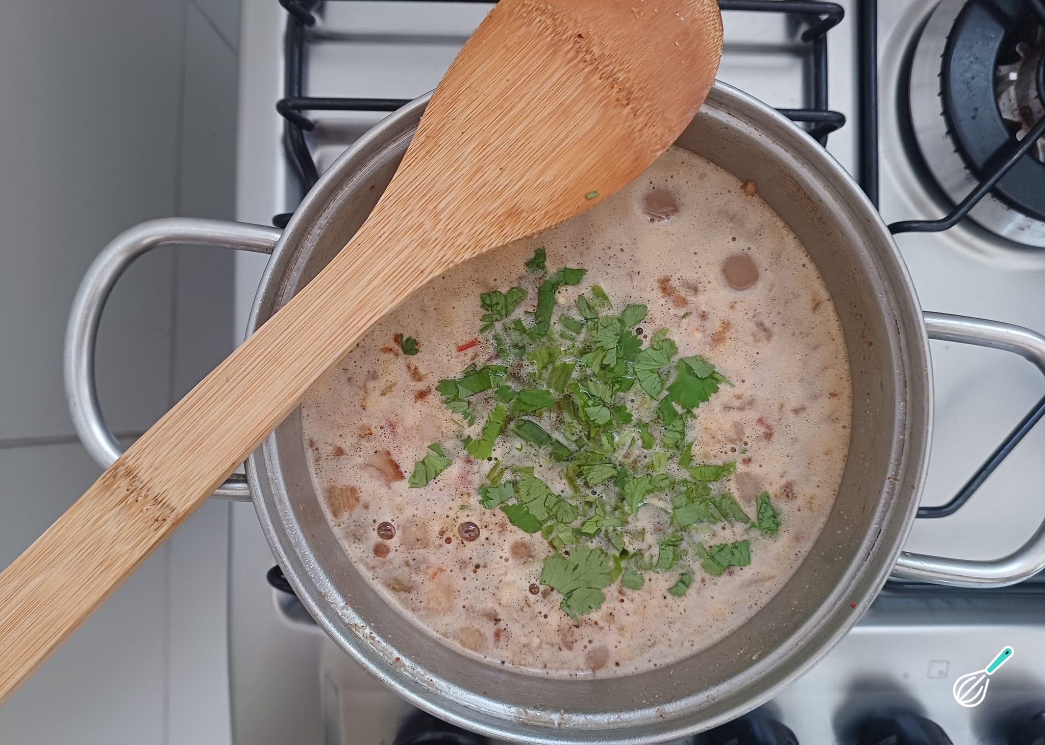 Quando o caldo estiver pronto, desligue o fogo e adicione o cheiro verde picado.