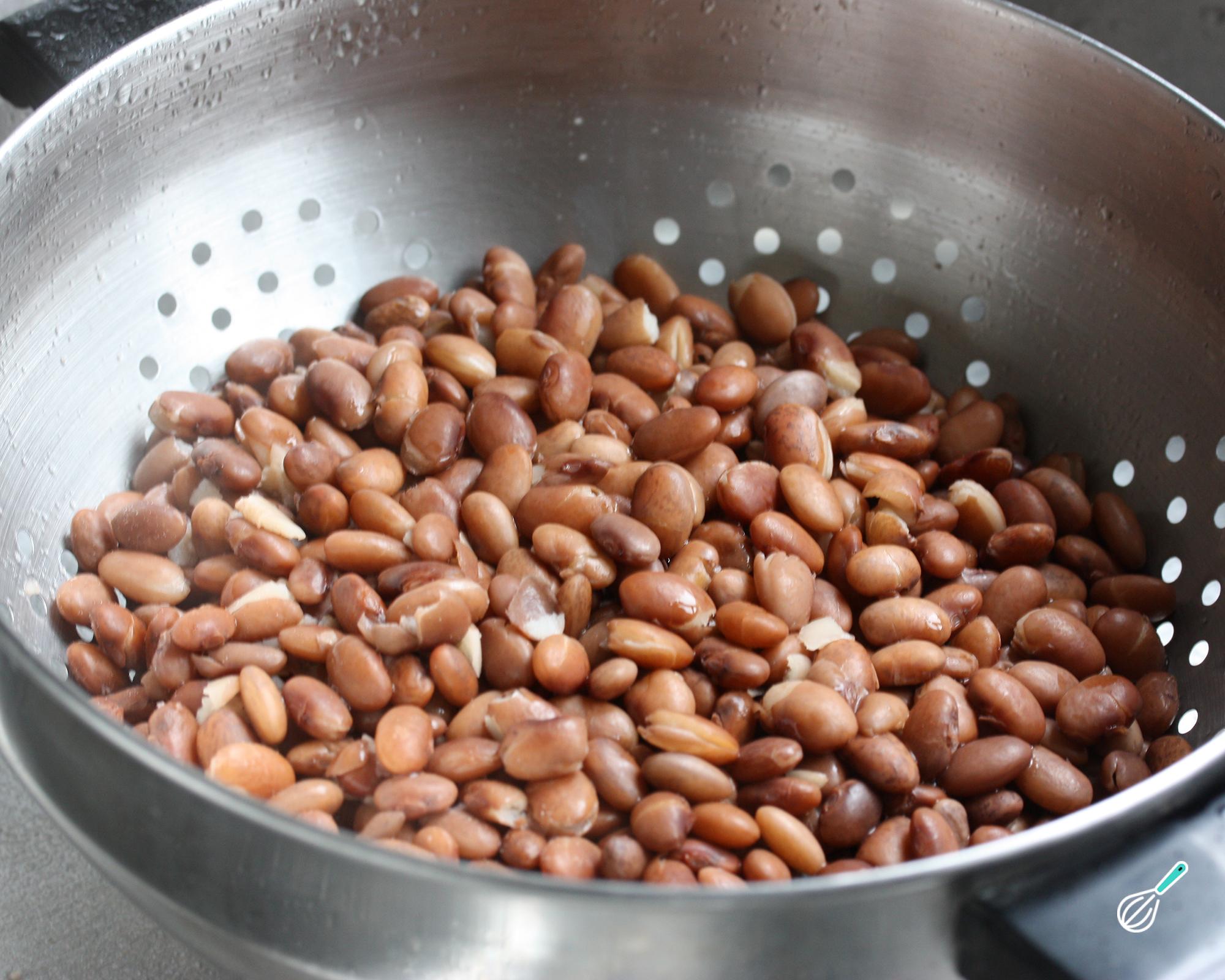 Hidrate o feijão colocando-o de molho em água por de um dia para o outro ou, no mínimo, por 8 horas. Escorra a água, enxague e cozinhe o feijão do jeito habitual - confira nossas sugestões de como temperar feijão.